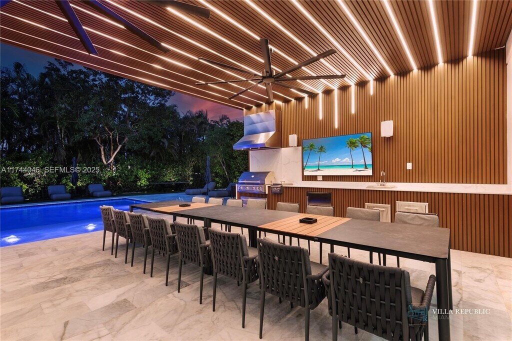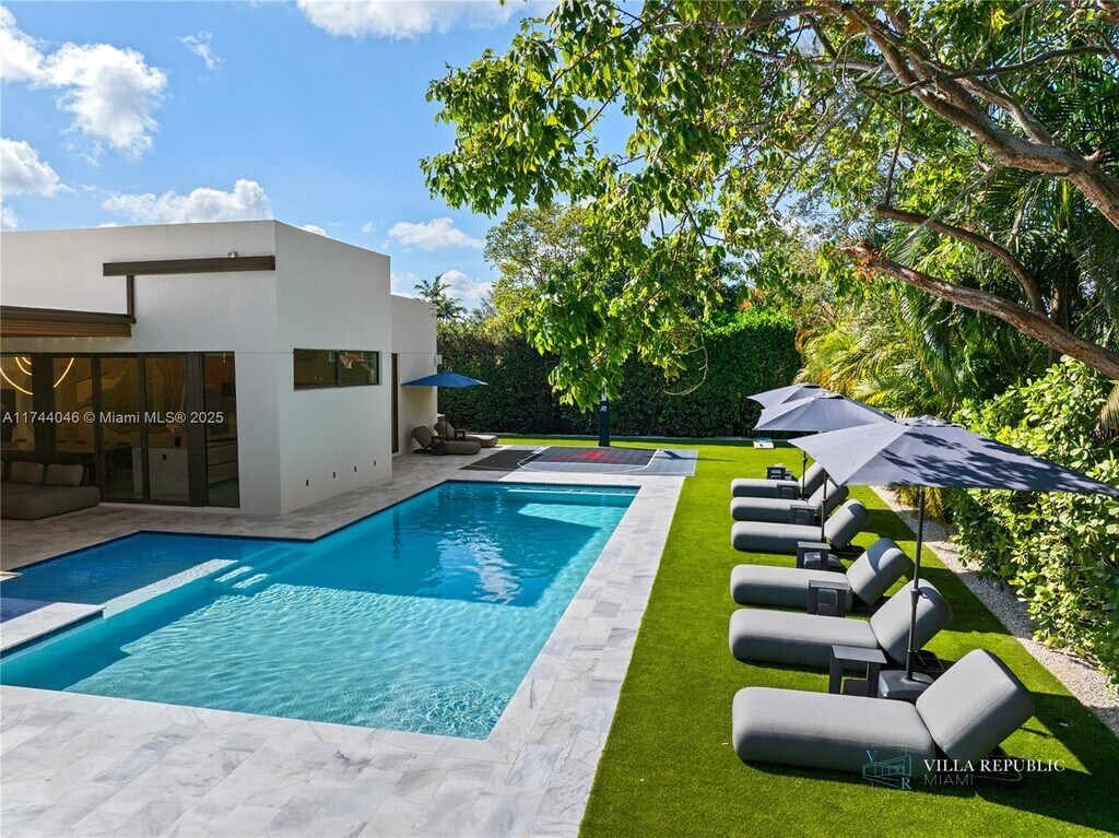 This stunning five-bedroom modern home blends luxury and functionality with a sleek, open-concept design. Expansive glass walls and high ceilings create a bright, airy atmosphere, connecting the indoors seamlessly to the backyard oasis. The spacious gourmet kitchen, equipped with high-end appliances and a large island, flows into the living and dining areas, perfect for entertaining. Outside, a sparkling pool with a sun deck invites relaxation, while a half basketball court offers recreation for all ages. Each bedroom is designed for comfort, with the master suite featuring a spa-like en-suite bathroom and a private terrace overlooking the pool. Available for short term! Seasonal, Monthly, Weekly, Daily. FOR RENTAL RATES, PLEASE CONTACT LISTING AGENT