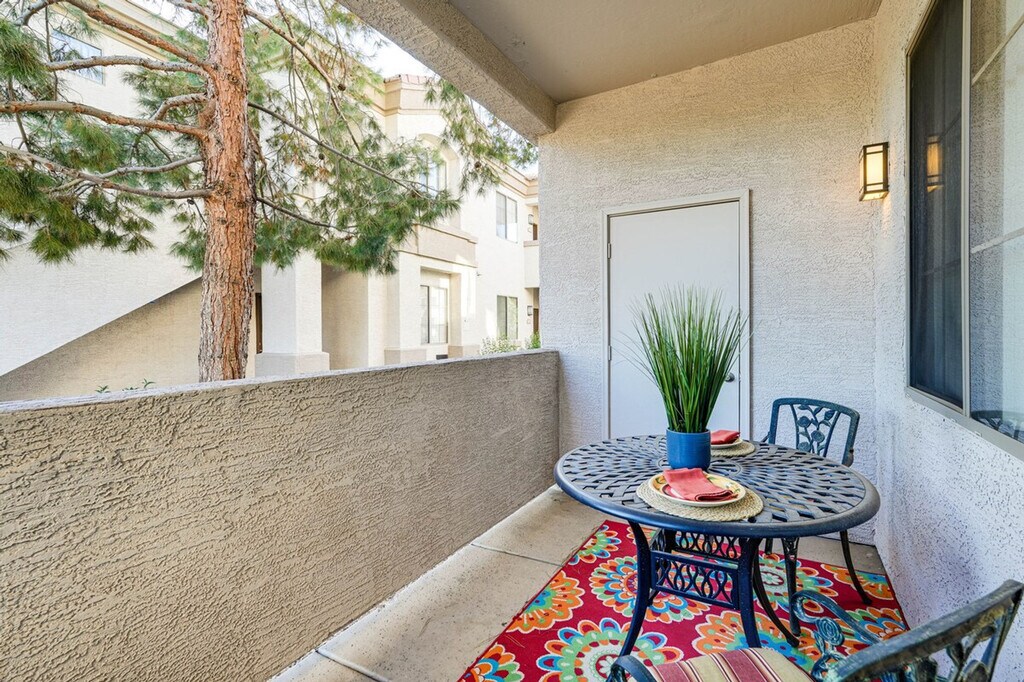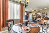 Feel at home in this recently upgraded 1-bedroom, 1-bathroom condo in Mesa, your ultimate home base for your next trip to the Phoenix area. Situated in the sleek and highly desirable Solana gated community, this desert oasis offers a variety of resort-style amenities. This luxe Arizona retreat invites you to unwind daily, while also enjoying attractions just moments away. The condo features a dining table, 2 flat-screen TVs, a furnished patio, upscale interior decor, and an outdoor kitchen. The fully equipped kitchen includes a Crock-Pot, drip coffee maker, toaster, cooking basics, and spices. For your convenience, there is also a washer and dryer, complimentary toiletries, and linens and towels. Pets are welcome with a $50 fee (2 pets max). Designated covered parking is available for 1 vehicle. Fill your days with hikes, sporting events, or simply walk to local bakeries, restaurants, and shops along Baseline Road. There is no smoking allowed, and no events, parties, or large gatherings are permitted. Guests must be at least 25 years old to book, and a photo ID may be required upon check-in. [SI]