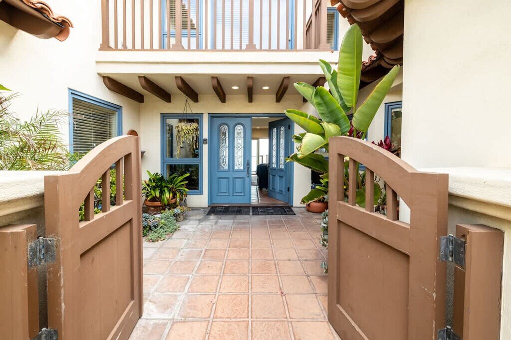 Experience the ultimate beachside retreat with this magnificent two-story beachfront main house and a separate cozy one-bedroom cottage in South Oceanside, CA. This property includes a lap pool, cabana, private sand beach area, fire ring, and direct stairway access to the beach and ocean. Enjoy a gas BBQ at the private beach with patio tables and chairs, making it a true beach vacation paradise. The Main House is a charming two-story Spanish-style home offering stunning ocean views from multiple windows, decks, and balconies. The lower level features a two-car garage and a spacious north-facing layout that includes the living room, kitchen, dining area, and a dedicated office space. On the south side, there is a cozy piano room, a guest bedroom, and a full bathroom. Upstairs, the master suite spans the south wing with a full bath and generous walk-in closet. The north wing includes a bedroom with twin bunk beds, a convenient adjoining laundry room, and a fun-filled game area, perfect for families. The Cozy Cottage is ideal for a couple or a family with older children (ages 8+), offering a king bed in the bedroom and a queen-size sleeper sofa in the living room. While the two rooms share an open layout without a separating door, the space is thoughtfully arranged for comfort and relaxation. The Cabana is perfect for outdoor entertaining, featuring a spacious patio with ample tables and chairs, nestled beside a large sandy beach-style area. Guests can enjoy al fresco dining with a gas grill, a well-equipped kitchenette, and a convenient half bathroom, providing everything needed for casual, beachside gatherings. Located directly on the Pacific Ocean, this property offers breathtaking views and easy access to the beach. South Oceanside is a vibrant neighborhood with a variety of dining, shopping, and entertainment options nearby. Enjoy the convenience of being close to local attractions while relishing the tranquility of beachfront living. Guests can contact the host through the booking platform for any inquiries or assistance during their stay. This property is spacious and directly located on the Pacific Ocean, providing a serene and picturesque environment for your beachside getaway. [SI]