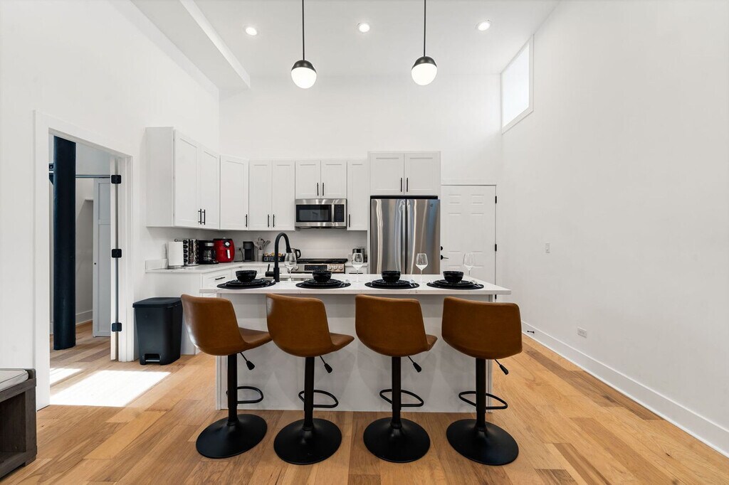 Feel at home in this spacious 3-bedroom, 3-bath apartment in the heart of Chicago’s vibrant West Town. This apartment features stylish furnishings and a fully equipped modern kitchen with stainless steel appliances and granite countertops, including cookware and utensils. The open-concept living room features stylish décor, a large sectional sofa, and a smart TV. Enjoy the convenience of an in-unit washer and dryer, central air conditioning, and complimentary high-speed Wi-Fi throughout. The apartment is not pet-friendly. Nestled in Chicago’s vibrant West Town area, this apartment offers a mix of local charm and urban convenience. The neighborhood is known for its tree-lined streets, historic architecture, and an easygoing community vibe. Within walking distance, you’ll find trendy coffee shops, bakeries, and some of the city’s best restaurants and bars along Chicago Avenue and Ashland. You’re just minutes from the West Loop, Medical District, and United Center. Downtown Chicago, River North, and the lakefront are a quick 10–15 minute drive or train ride away. Public transportation is easily accessible with bus stops and the Blue Line nearby, connecting you directly to downtown and O’Hare Airport. Quiet hours are between 10 PM and 8 AM. No parties or events are allowed, and violations will incur a $1,000 fine. Smoking inside the apartment is prohibited, and violations will incur a $500 fine. Tampering with noise monitors or cameras is prohibited, and violations will incur a $500 fine. Please be respectful of neighbors and follow quiet hours. No additional guests are allowed at the apartment who were not on the reservation. Guests are liable for any damage to the property and should report any damages noticed at check-in. To abide by all legal requirements and building security rules, you will be asked to provide a copy of your official government-issued photo ID, confirm your contact information, and provide a valid credit card with a name that matches your ID, and pass through our verification portal. Check-in time is 4:00 PM, and check-out time is 11:00 AM. The information is collected for screening and verification only and is not stored or used for any other purposes. Check-in instructions might be withheld until you have successfully completed our verification portal. [SI]