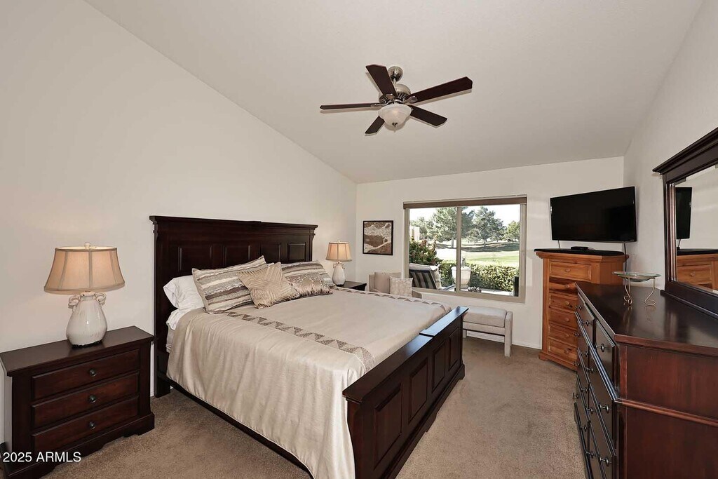 Move In Ready. Golf Course Property! Furnished 55+ community. Tile flooring throughout. Vaulted ceilings that create an open,airy feel. Step outside to the open patio and take in breathtaking golf course viewsperfect for morning coffee or evening relaxation. Beautiful landscape,green grass,tall mature trees and activities including golf,Olympic size pools,tennis,pickleball,restaurants and so much more. 2-car garage for secure parking and storage.