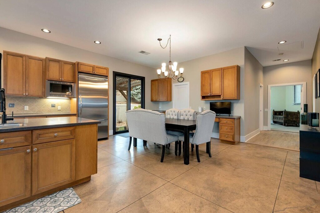 Experience the luxury of modern ranch living in this spectacular 4950 Sq. Ft. home, fully remodeled for your comfort. Located on a half-acre of private land, this home features a fenced-in yard, a huge great room with stunning windows facing south and west, three decks for seamless indoor/outdoor living, and a large, spacious kitchen with ample counters and storage. The primary suite offers a spa bath and a walk-in closet, making it easy to feel at home. Relax and entertain in style with the upscale amenities this home offers. Enjoy evenings on the primary balcony with a gas fire pit, stay warm with radiant heating and two gas fireplaces, and have fun in the finished walkout basement featuring a wet bar, two desks, a treadmill, and free weights. An attached 2-car garage adds convenience, and for those hot Colorado days, take a dip in the lounging pool while admiring the scenic backyard mountain views. To make your arrival smoother, a starter welcome packet is provided, including basic toiletries and cleaning supplies. Please note that any additional supplies will need to be replenished by the guest as these items are not restocked. This is an industry-standard practice. This home boasts a prime location that combines privacy with accessibility to local attractions. Enjoy the tranquility of a fenced-in yard while being just a short drive from the city's best dining, shopping, and entertainment options. The property's decks and large windows offer stunning views of the surrounding landscape, making it a perfect spot for those who appreciate nature and outdoor activities. Cleaning supplies are not stocked due to safety issues. The home includes a well-equipped workspace featuring two desks, ideal for those who need to work from home. With amenities like a treadmill and free weights nearby, you can easily integrate fitness into your daily routine. [SI]