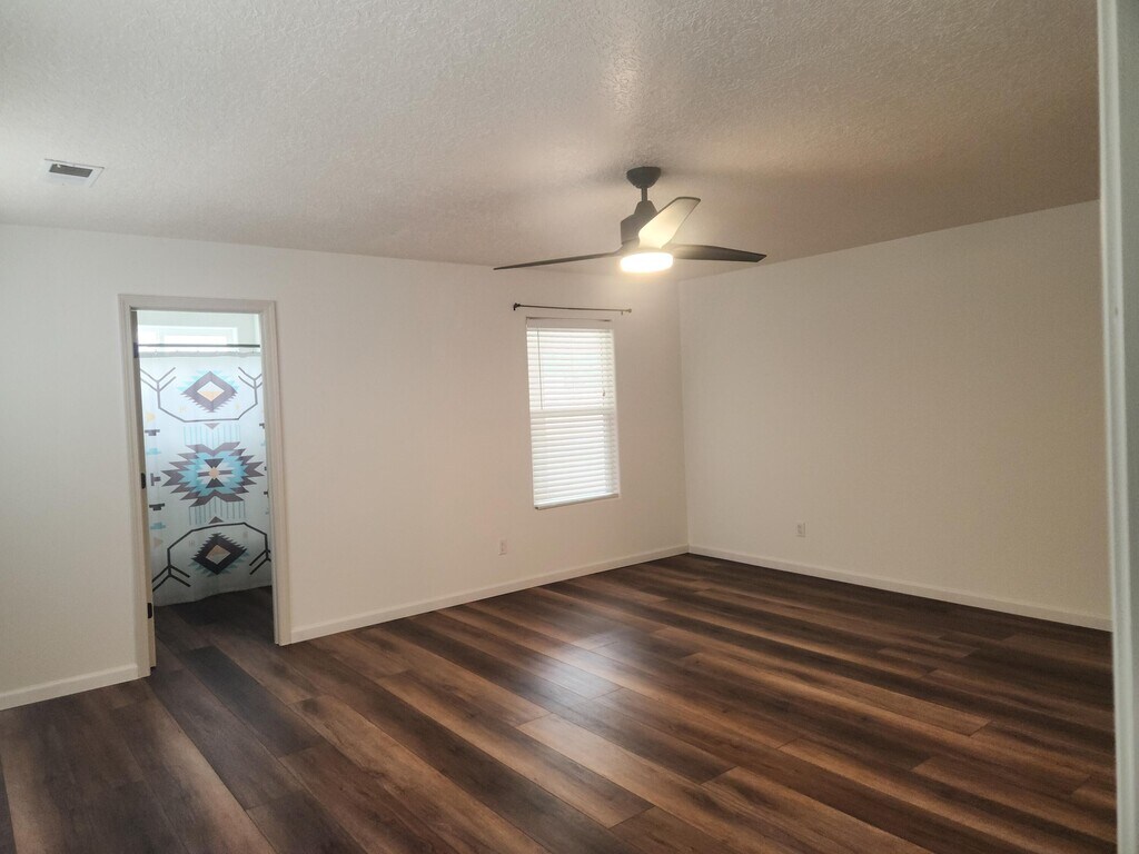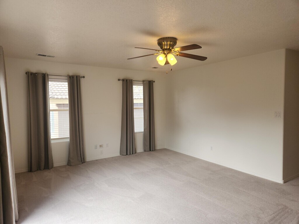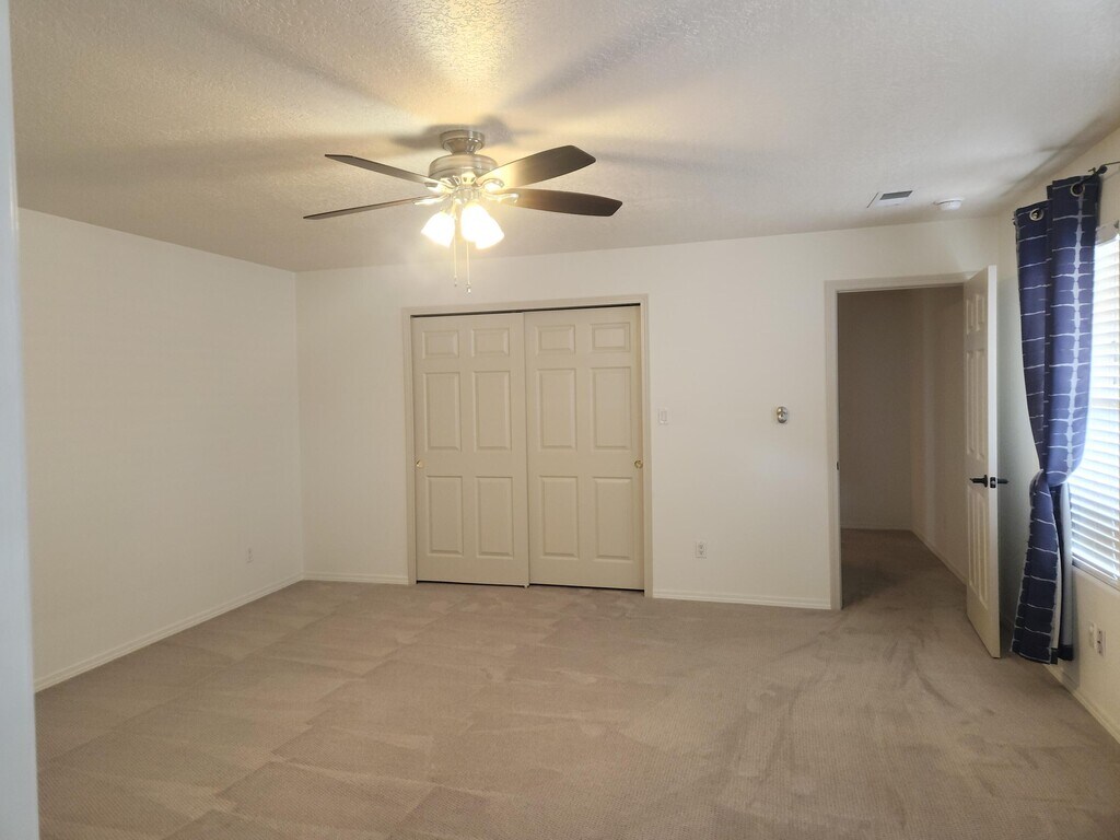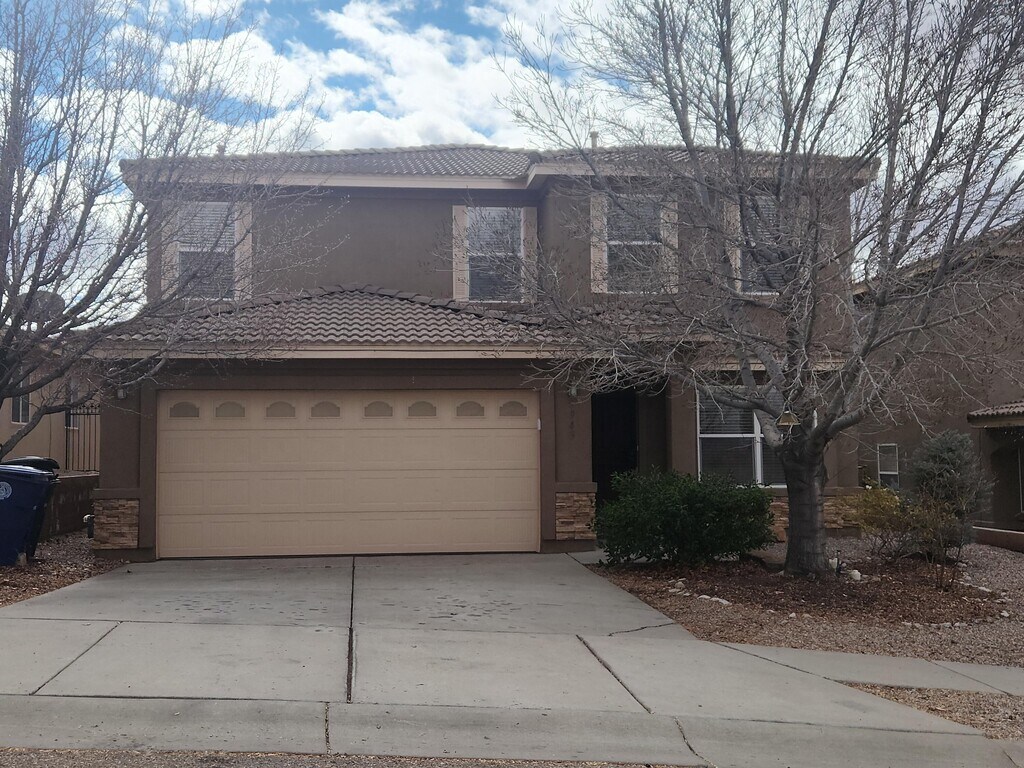 Substantial rent reductions! Available NOW. Beautifully large 4/br home close to Kirtland AFB. 2 Primary bedrooms (one up/one down) each feature full baths and large walkin closets. 2 living areas (downstairs has a gaslog FP - Upstairs loft has spacious deck). 2 more LARGE bedrooms and 1.5 additional bathrooms. Refrigerated Air (2 units). Gorgeous fully landscaped/terraced backyard w/water feature,large covered patio and a dog run. Pets negotiable with owner approval. $40 Application fee per adult over 18