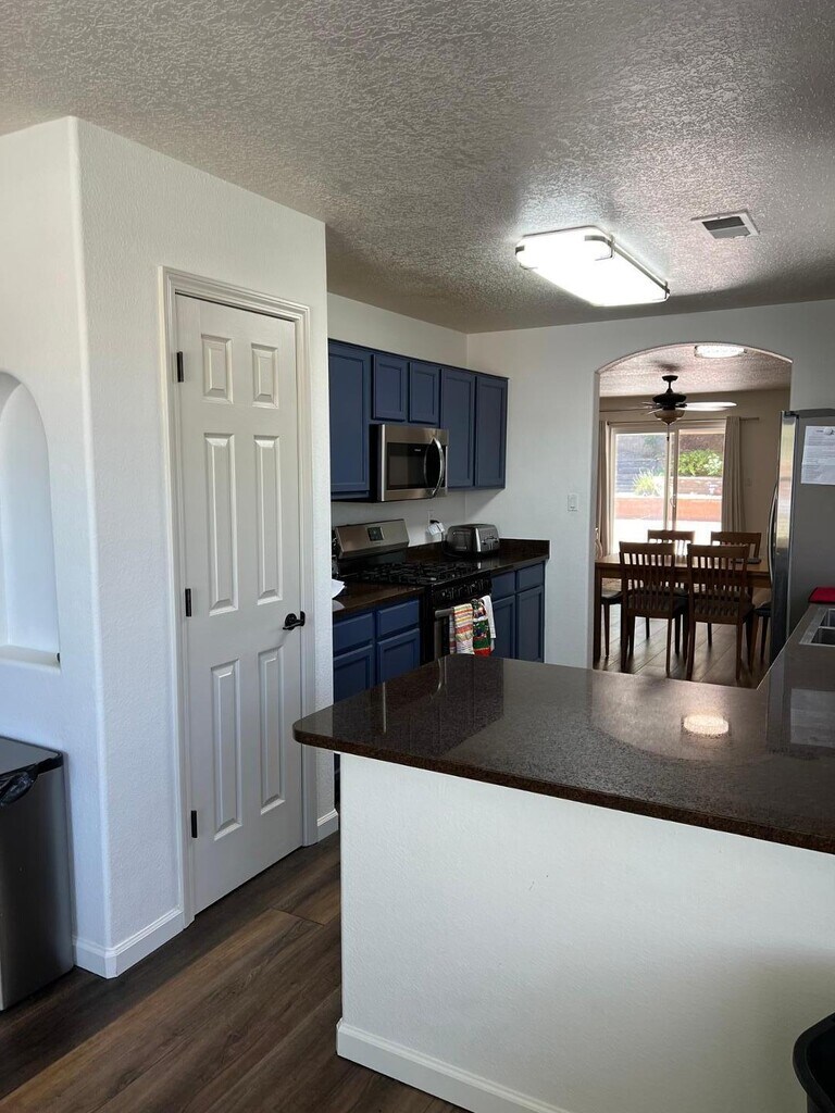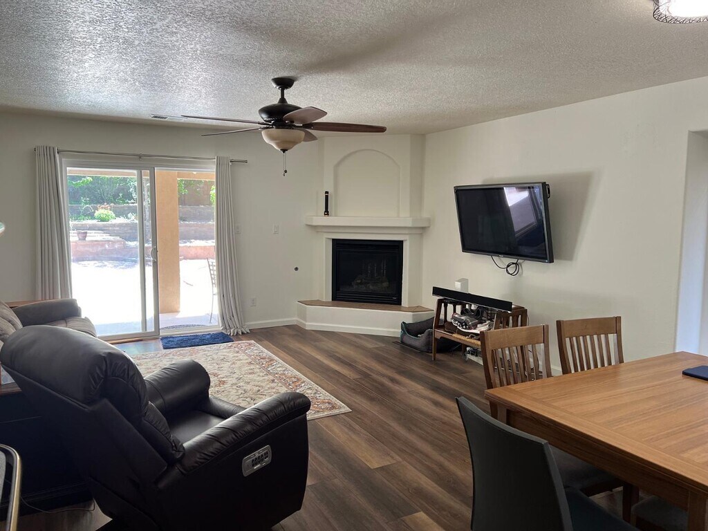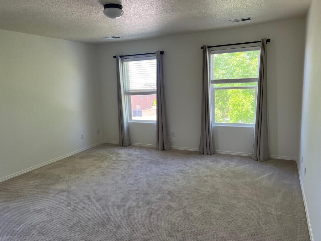 Available January 1st. Beautifully large 4/br home close to Kirtland AFB. 2 Primary bedrooms (one up/one down) each feature full baths and large walkin closets. 2 living areas (downstairs has a gaslog FP - Upstairs loft has spacious deck). 2 more LARGE bedrooms and 1.5 additional bathrooms. Refrigerated Air (2 units). Gorgeous fully landscaped/terraced backyard w/water feature,large covered patio and a dog run. Pets negotiable with owner approval. $40 Application fee per adult over 18