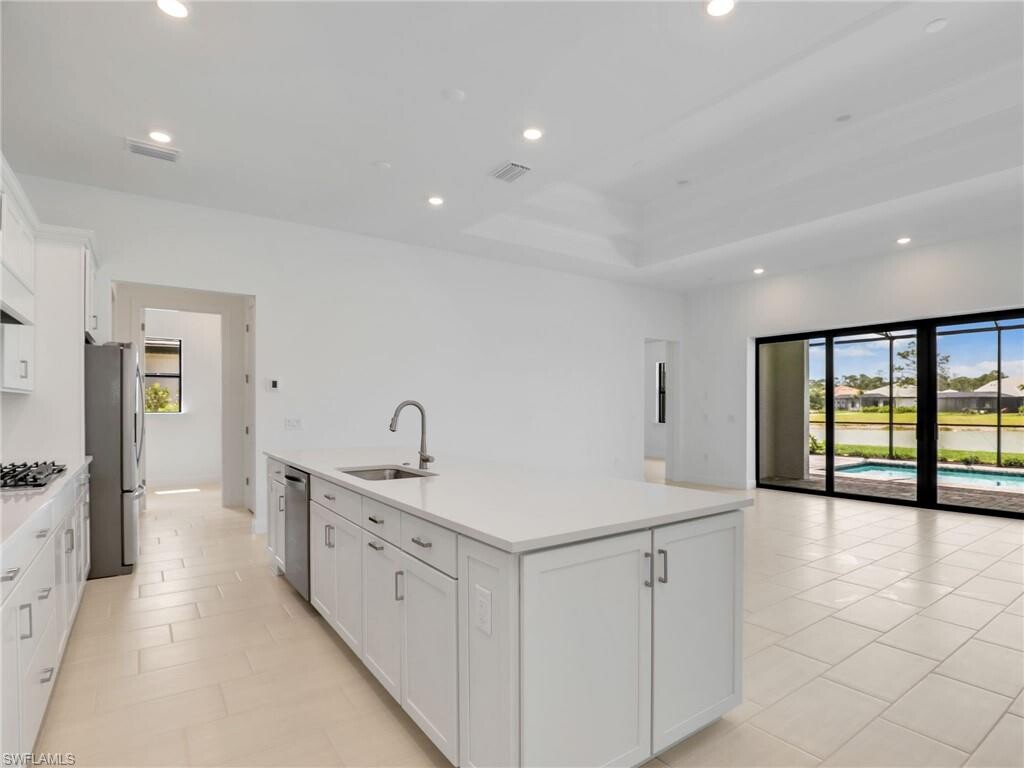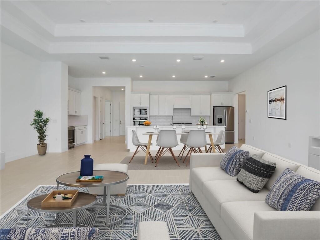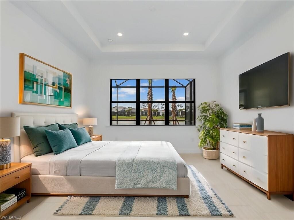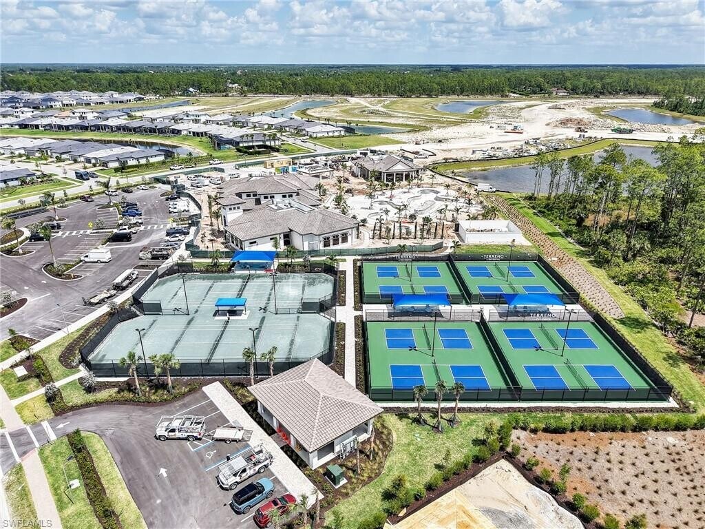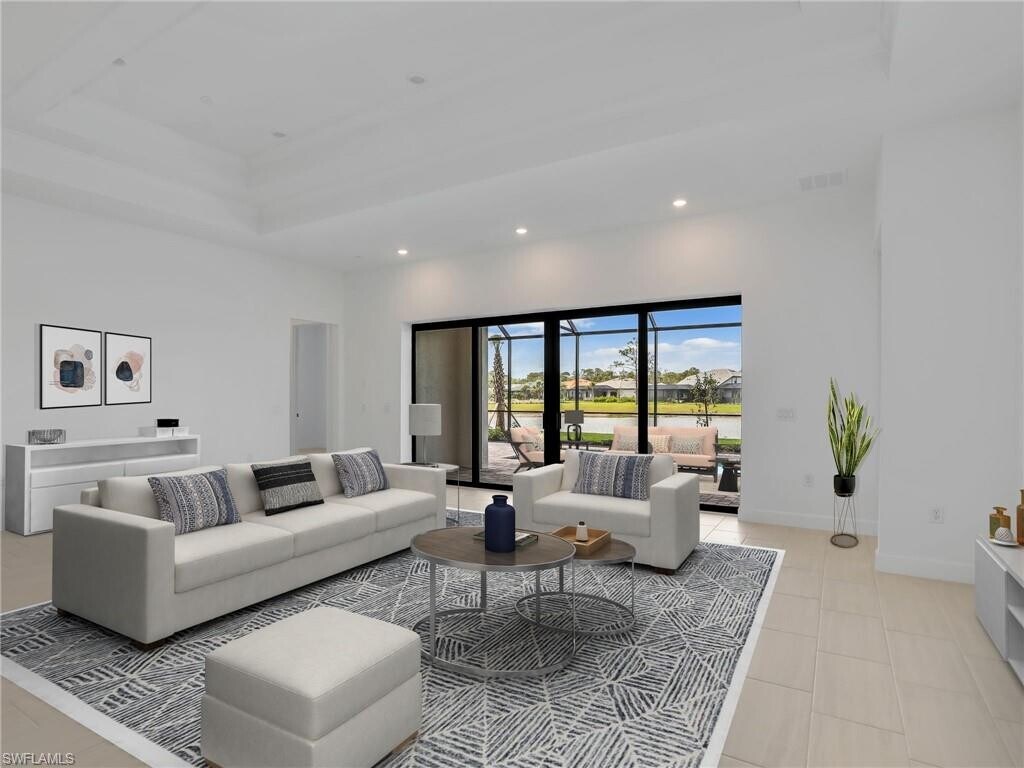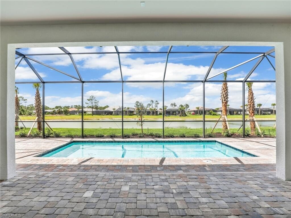 Welcome to Terreno's crown jewel - an exquisite never-lived-in Stardom model that perfectly balances sophistication with comfort. This immaculate 3-bedroom plus den residence offers the ultimate Naples lifestyle in a brand-new luxury community. Step inside to discover thoughtfully upgraded interiors featuring premium tile flooring throughout, elegant tray ceilings, and walls of windows that flood the space with natural light. The heart of this home is its gourmet kitchen, showcasing sleek quartz countertops and top-tier stainless steel appliances that will inspire your inner chef. Relax in your private backyard oasis, where the sparkling pool overlooks tranquil lake views - the perfect backdrop for morning coffee or evening entertainment. With 3 bathrooms and the convenience of a spacious 3-car garage, this residence leaves nothing to be desired. The Terreno lifestyle extends beyond your doorstep, with resort-style amenities just a short stroll away: tennis and pickleball courts, a state-of-the-art fitness center, a magnificent community pool, and even an on-site restaurant. Golf enthusiasts will appreciate the proximity to Valencia Golf Course for impromptu tee times. This exceptional location combines peaceful luxury living with convenient access to Naples' finest shopping, dining, and excellent schools - truly ideal for families or anyone seeking the perfect blend of privacy and community in Southwest Florida. 1st and last month rent, 1 month deposit are required