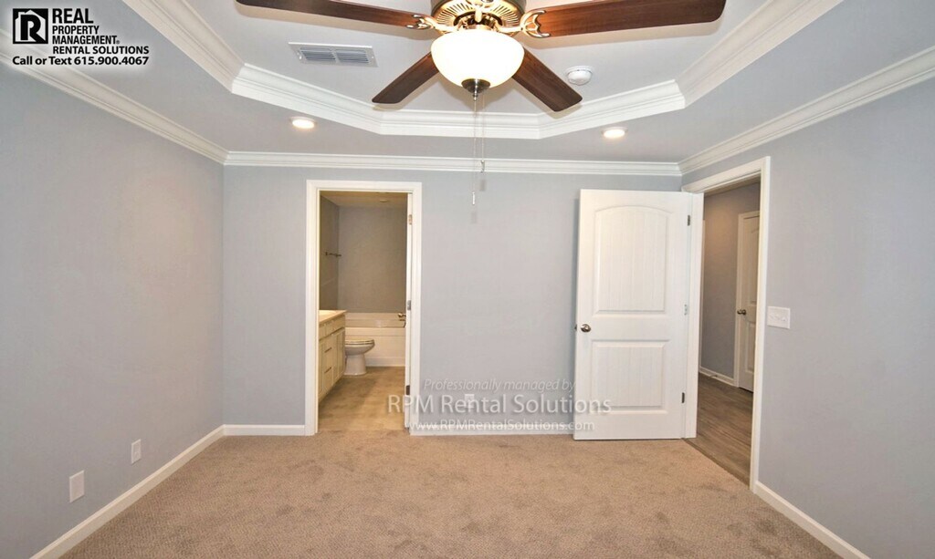 Gorgeous executive townhome in Murfreesboro's Villas of Evergreen Farms, built in 2021. Beautiful kitchen with granite countertops, stainless appliances and upgraded cabinets and lighting. Owners suite downstairs with trey ceiling and glamour bath- garden tub, separate shower, double vanity and large walk-in closet. Bonus loft room with balcony overlook plus two more bedrooms and full bath upstairs. Washer and dryer included. Large private patio that opens up to secluded tree-lined grassy area. 1 car garage plus 2-car side by side driveway. Right across the street from the community playground and dog park. Close to shopping, restaurants and great schools. Enjoy an easy lifestyle with lawncare and landscaping included. **2 year lease available** Available NOW! Call RPM Rental Solutions today for your personal showing at ! See a video tour on our website. See a 360 tour on our website. Professionally managed by locally owned and operated RPM Rental Solutions, offering a tenant portal and easy online rent payments. View this home on our website. Qualifications: Income 3x the rent; credit 600+,utilities can't be past due or in collections, good previous landlord references. Application fee: $50 per resident of the home who is 18 and over. No smoking inside premises. Renters insurance with personal liability coverage is required. Technology and onboarding fees may apply. Small pet will be considered with $450 non-refundable pet fee and $40/mo pet rent, no aggressive breeds. Nearby schools: Scales Elementary, Rockvale Middle & High Schools (verify school zones)