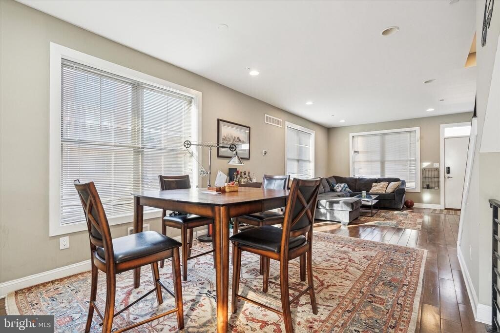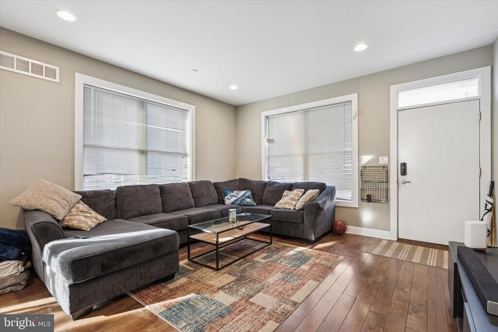 This 3 bedroom, 3 bath home sits on a desirable corner lot in Point Breeze and is filled with natural light from multiple exposures. Inside, hardwood floors, high ceilings, and an open, airy layout showcase the home’s modern finishes. The main level flows effortlessly from the living area into a well-appointed kitchen featuring granite countertops, stainless steel appliances, and stylish tile accents, with direct access to a private rear patio—perfect for outdoor dining or relaxing in warmer months. The finished lower level offers flexible living space or the option for an additional bedroom, complete with a full bathroom. The second floor includes two generously sized bedrooms and a full bath, while the top level is reserved for a private primary suite with its own bathroom and a convenient wet bar. A rooftop deck crowns the home, offering expansive city views and making this a standout rental in one of South Philadelphia’s most vibrant neighborhoods.