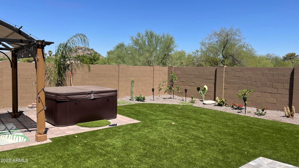 A great opportunity to live in this fully built-out home in Acacia Place. This house has it ALL! Close to Desert Ridge and Kierland shopping and dining. This is the Festival floor plan with front patio and large backyard with views! This highly upgraded home features 42 inch upper cabinets with speckled light granite 1.5 inch countertops. All stainless-steel appliances in kitchen including side by side fridge,upgraded carpet and pad in 2 bedrooms. This home features upgraded tile flooring,large stainless steel kitchen sink,extended title back patio,complete desert garden back yard with irrigation system,water softener with reverse osmosis,pergola and solar system! This home won't last!