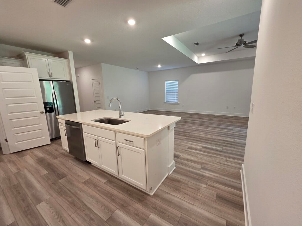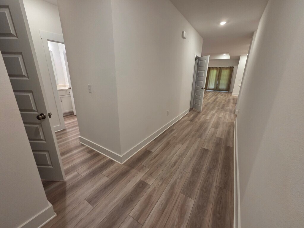 Like new- this beautiful detached, single home features 4 bedrooms and 3 baths. Perfect for the working couple! Located in Foley, this home is convenient to OWA, Gulf Shores, Orange Beach, Fairhope, Daphne, Summerdale, and a great variety of dining, and shopping. Primary bedroom has large walk-in closet and private bath and conveniently located off the main living area and kitchen. Two front bedrooms share a separate hallway and bathroom- great set-up for offices and convenient guest bathroom. The 4th bedroom is conveniently located off the foyer and main living area and includes its own private bathroom, the ideal set-up for a roommate situation. Large living and kitchen area is bright and cheery. Modern kitchen hosts sleek design and new appliances. Perfect set-up for entertaining- bar height counter at kitchen overlooks into the main living area. Living area opens to the outdoors where you'll find a roofed porch which looks onto a tranquil, forested area which allows you to unwind after a hard day at work... or play. Laundry room is conveniently located off the garage. Garage comes with two remotes. House is at the end of a cul-de-sac, limiting subdivision traffic. In addition to its backing up to a natural green space, there are multiple other park-like areas with lakes in close walking distance to home. NOTES: NO PETS ALLOWED. Laundry room does not include washer and dryer- renter may bring their own. * Renter(s) must satisfactorily pass Credit and Background checks. * Term is on annual basis with damage deposit. Rent is due on the 1st day of the month, payable via checking ACH. * Renter(s) must carry and provide proof of Renter's Insurance prior to moving in. * Renter(s) is responsible for securing and paying all utilities and lawn maintenance. * This is a NO SMOKING and NO PETS residence.