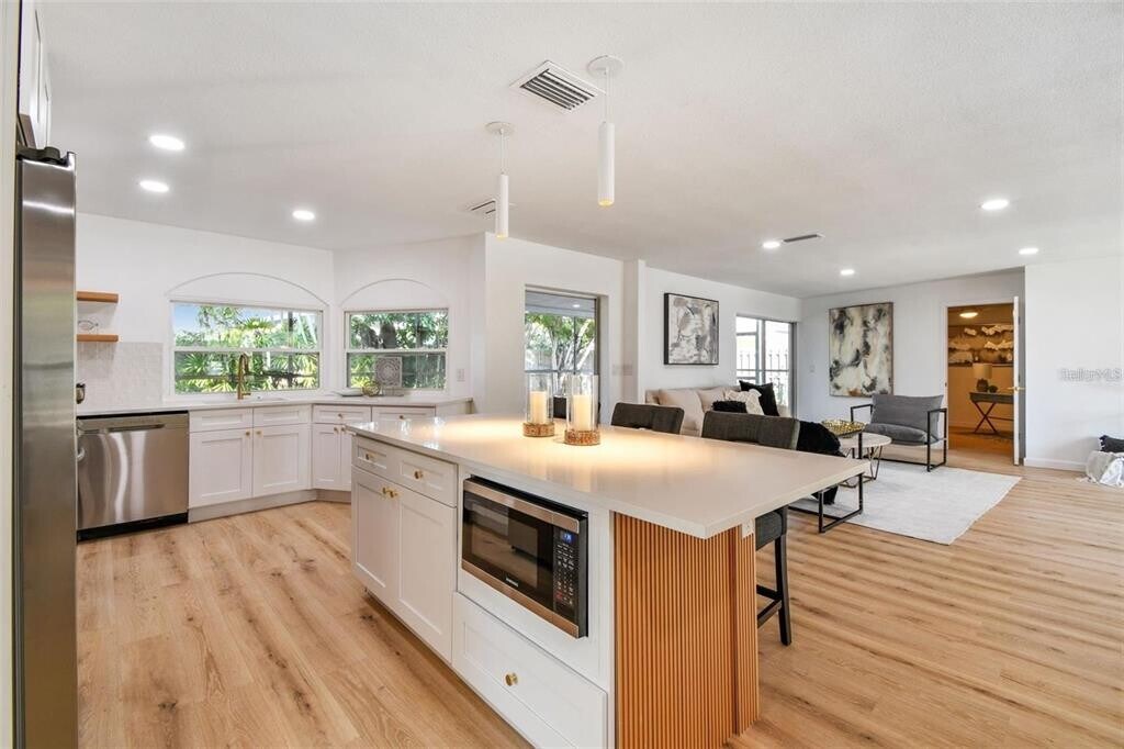 Available April 1st - Pasadena Golf Club Estates. Welcome to this fully renovated,design-forward residence located in the highly sought-after Pasadena Golf Club Estates neighborhood of St. Petersburg. This 4-bedroom,2-bathroom home has been thoughtfully updated from top to bottom and offers a seamless blend of modern style,comfort,and functionality. The open-concept layout is anchored by a stunning chef’s kitchen,featuring a large island with bar seating,stainless steel appliances,updated cabinetry,and contemporary lighting—perfect for both entertaining and everyday living. Wide-plank wood look flooring,recessed lighting,and abundant natural light flow throughout the home,creating a bright and welcoming atmosphere. The living spaces open effortlessly to a spacious screened lanai,offering an ideal indoor-outdoor lifestyle. Whether relaxing,entertaining,or enjoying Florida evenings,this expansive lanai provides a private and versatile extension of the home. The primary suite is a true retreat,highlighted by a spa-inspired bathroom with a double vanity,modern finishes,and a large walk-in shower. Additional bedrooms are well-proportioned and flexible for guests,home offices,or family living. Outside,the property impresses with a two-car garage,large circular driveway,and beautifully maintained landscaping. Lease Details & Highlights; Available April 1st 6-month minimum lease required Monthly rent includes lawn care,trash service,and pest control Pet friendly – up to 3 pets (cats and dogs welcome) First month’s rent + $4,500 security deposit required at move-in As renovations wrap up,some finishes might vary from the pictures. Ideally located near beaches,golf,shopping,dining,and downtown St. Petersburg,this home offers the perfect combination of style,space,and convenience. MLS# TB8474815