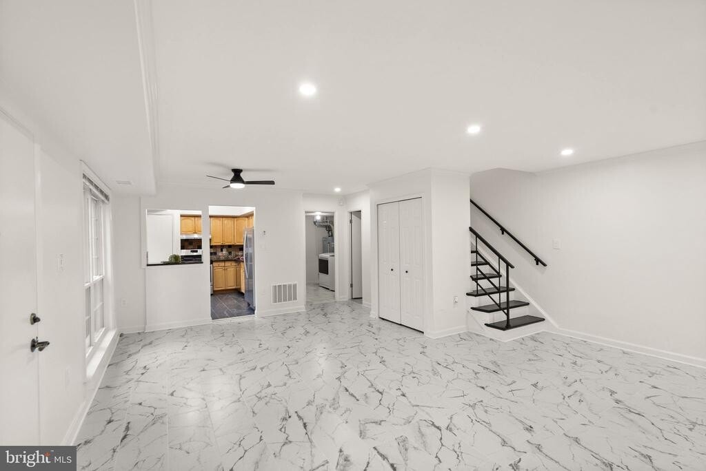 Welcome to 1949 Kennedy Drive, a beautifully updated and light-filled two-level condo offering effortless living in the heart of McLean. This spacious residence combines modern comfort with unbeatable convenience, placing you moments from top commuter routes, shopping, dining, and everything this sought-after community has to offer. Step inside to a bright open layout featuring generous living and dining spaces, large windows, and a seamless flow ideal for everyday living. The well-appointed kitchen includes ample cabinetry, quality appliances, and a functional design perfect for cooking and entertaining. The kitchen overlooks the spacious living/dining space with stylish tile floors and two oversized picture windows that allow the light to flow in. The upper level has two large, well appointed en-suite bedrooms with recently tastefully renovated bathrooms, Additional highlights include in-unit laundry and storage, fresh finishes, and a front patio —perfect for morning coffee or unwinding after a long day. Residents enjoy a well-maintained community with convenient and ample parking, access to the community pool and close proximity to Tysons Corner, the Silver Line Metro, major highways, and nearby parks and trails. With its prime location and inviting style, this condo is the ideal rental for those who want comfort, convenience, and the best of McLean at their fingertips.