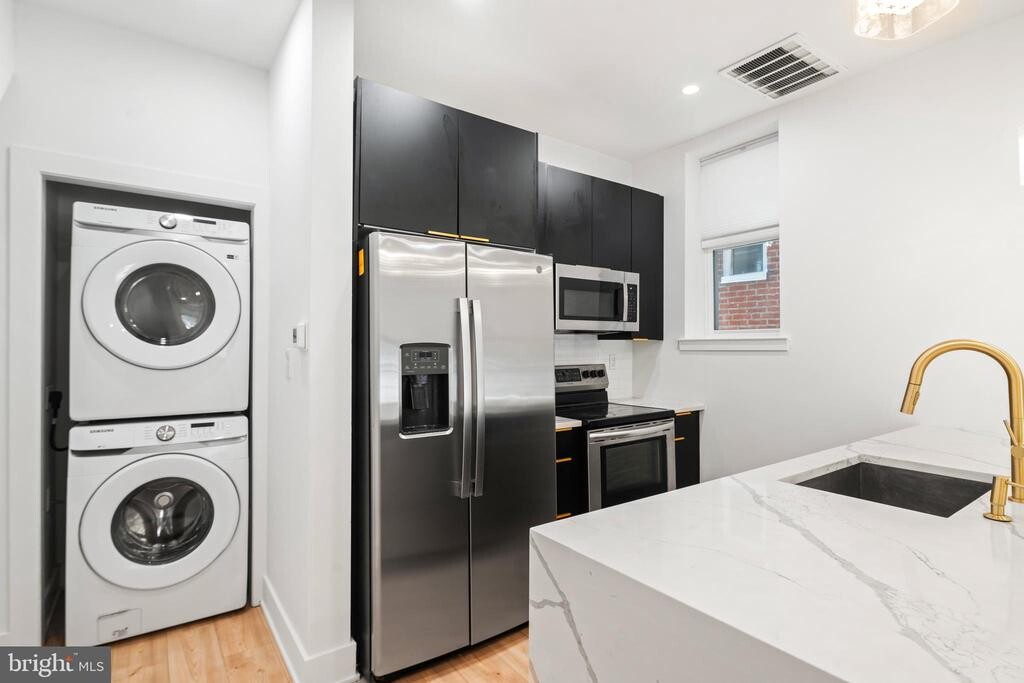 Welcome to your dream two-bedroom, one-bathroom apartment nestled within a charming triplex building. This recently renovated gem boasts a fresh and modern aesthetic with light hardwood flooring throughout and a pristine canvas of fresh white paint, providing a bright and inviting atmosphere. Step into the sleek, contemporary kitchen equipped with brand new stainless steel appliances and luxurious quartz countertops. The perfect setting for culinary adventures, this kitchen is not only stylish but also functional. Say goodbye to laundromat trips, as the convenience of a washer and dryer in-unit adds a touch of ease to your daily routine. This two bedroom apartment offers a unique layout, providing a sense of spaciousness and separation between living and sleeping areas. Imagine having the luxury of your own private rear yard where you are able to unwind, entertain friends, or simply soak in the views.