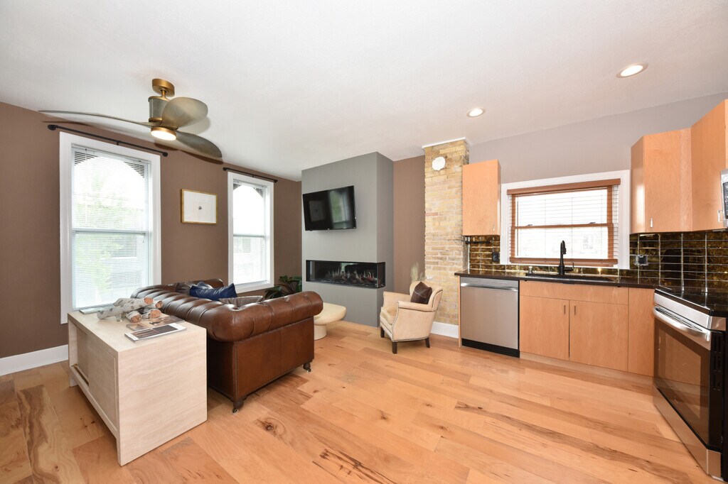 Updated character filled downtown adjacent loft space. Available for immediate occupancy. Open concept living room and kitchen with appliances included. Dining space,and additional office space or second bedroom. Newer wood plank flooring throughout. Updated bathroom with tile floor and washer/dryer combo unit. Private access,walkable location,call today.