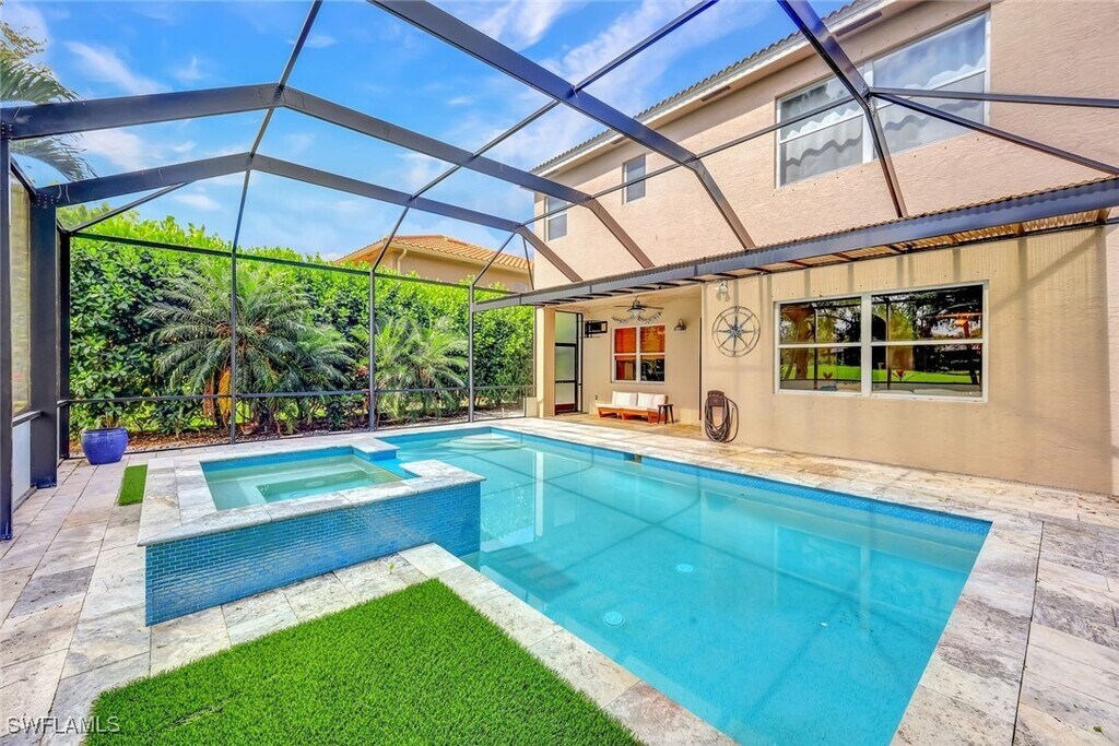Available now! Dog friendly! Resort-style living in this stunning two-story home with over 3,000 sq ft overlooking the 2nd hole at Valencia Golf & Country Club. Enjoy your private backyard oasis with custom pool and 6-person spa (2017),new saltwater system (Feb 2026),2025 pool heater,and upgraded pump,all set on concrete under elegant travertine decking. An expansive screened lanai with brand-new screens (2026),travertine sidewalks on both sides of the home,and lush landscaping create seamless indoor-outdoor living. Beautifully laid fresh red mulch in all the flower beds February (2026). Inside,you’ll find crown molding,no carpet,and luxury vinyl plank flooring throughout. The spacious primary suite offers dual walk-in closets and a spa-style bath with quartz counters,soaking tub,and separate shower,while the upstairs bathrooms feature durable tile flooring. A generous loft provides flexible space for an office,gym,or media room. The chef’s kitchen includes a farmhouse sink and modern appliances,perfect for everyday cooking and entertaining. As a resident of Valencia Golf & Country Club,you’ll enjoy championship golf,clubhouse,fitness center,tennis courts,social events,and a community pool,with elementary,middle,and high schools located just two blocks away. Move-in ready and set within a premier gated community,this home delivers true Florida resort-style living.