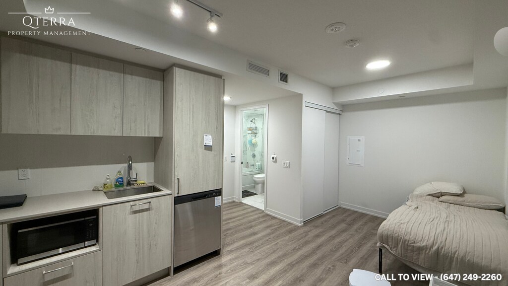 FRESHLY COMPLETED STUDIO APARTMENT WITH HIGH-END FINISHES This brand-new, studio condo offers modern elegance and thoughtfully chosen finishes throughout. Ideal for professionals or couples seeking a living experience in a well-connected urban setting. KEY PROPERTY DETAILS: - Type: Condo - Bedrooms: Studio - Bathrooms: 1 - Size: 400 SQF - Locker: 1 included - Availability: January 1, 2026 UNIT AMENITIES: - Condition: Brand-new construction with pristine interiors and luxury finishes. - Upgraded Kitchen: Outfitted with stainless steel appliances, stone/granite countertops and an upgraded backsplash, for cooking and entertaining. - Dishwasher: Included for added convenience. - Microwave: Included for everyday ease. - Flooring: Smooth laminate flooring throughout the unit provides a sophisticated look while being durable and easy to clean. - Ceiling Height: Impressive 8.5-foot ceilings give the space an airy, upscale feel that enhances openness. - View: Overlooks a peaceful courtyard and backyard, offering greenery and a sense of openness. - Laundry: Ensuite laundry facilities ensure privacy, comfort, and convenience. - Closets: Regular closets provide ample storage and easy organization. - Bathroom: Upgraded with modern fixtures and finishes for a clean, polished feel. - Thermostat: A personal thermostat allows full climate control to match your comfort preferences. - Private Balcony: Offers a charming space to enjoy your morning coffee or unwind. - Furnishing: Delivered unfurnished, ready for your vision and personal style. - Layout: The open-concept layout seamlessly connects the areas, offering flexibility and flow for everyday life. - Natural Light: Generous sized windows flood the unit with sunlight throughout the day, contributing to a bright and energizing atmosphere. BUILDING AMENITIES: - BBQ Area & Outdoor Patio: Perfect for al fresco dining and entertaining. - Indoor Pool & Sundeck: Enjoy a resort-like experience with a pool access and outdoor lounge areas for warm-weather relaxation. - Concierge: Professional concierge service ensures secure, seamless living. - Party & Dining Room: Host gatherings or enjoy communal dining in beautifully appointed social spaces. - Media Room & Visitor Lounge: Ideal for movie nights, casual meetings, or relaxing with guests. - Rec Room & Indoor Child Play Area: Designed to accommodate families and active lifestyles. - On-Site Laundry & Coin Laundry: Additional shared options available for guest or large-load use. - Storage: Dedicated building storage space ensures seasonal and overflow items stay organized. - Restaurant On-Site: Enjoy the convenience of in-building dining without leaving home. NEIGHBORHOOD: Commerce Street in Vaughan, Ontario, is located in the Vaughan Corporate Centre, a rapidly growing urban hub. The area offers modern high-rise developments, excellent transit access via the Vaughan Metropolitan Centre, and proximity to shopping and dining at Vaughan Mills. With business centers, entertainment options, and convenient highway access, Vaughan Corporate Centre provides a dynamic and connected city lifestyle. Don’t miss out—schedule your private showing today by calling or texting us.