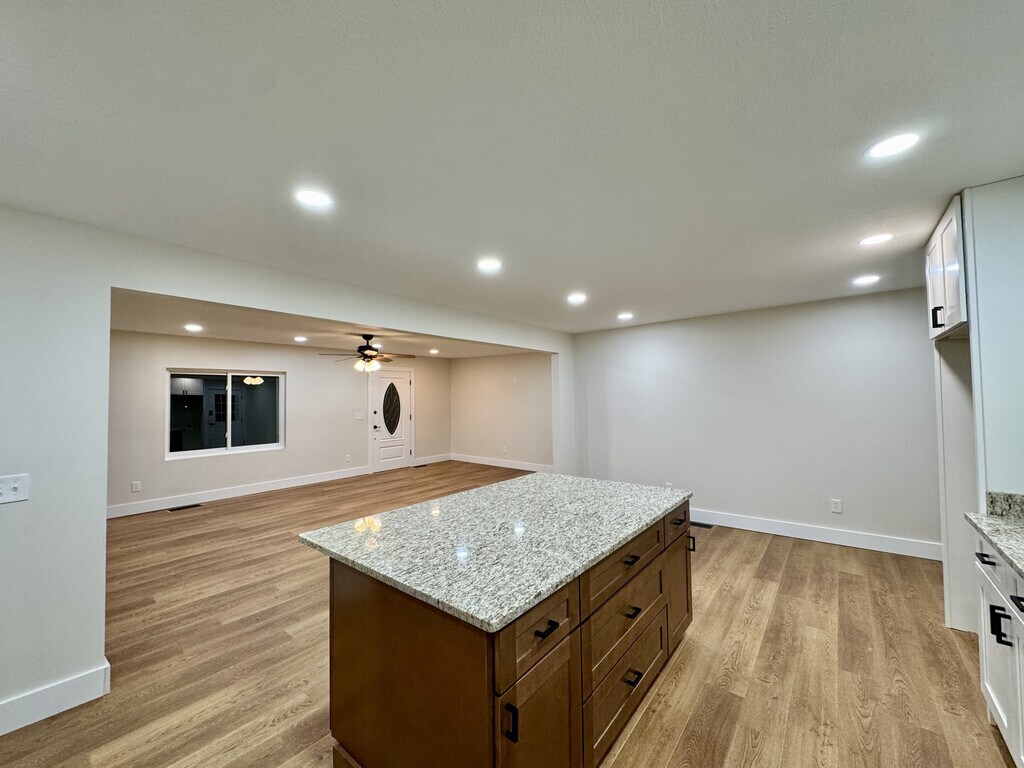 This stunning all-brick rancher has been completely remodeled from top to bottom and is move-in ready! The main level features new LVP flooring throughout and a bright, open floor plan designed for comfortable living and entertaining. The beautifully updated kitchen boasts all-new appliances, a built-in oven/microwave combo, sleek glass cooktop, crisp white cabinetry, granite countertops, and a gorgeous natural-tone center island that anchors the space perfectly. The spacious primary suite offers a true spa-like retreat with a relaxing soaking tub, tiled shower, double-sink vanity, private water closet, and a large walk-in closet. A laundry room and convenient half bath complete the main level. Down the open staircase, you'll find a generous family room, two additional bedrooms, and a large full bath. A versatile flex room is ideal for a home office, workout space, or hobby room. Double glass doors provide access to the outdoors. The lower level also includes a utility room housing the water heater and HVAC system. Situated on 2.5 beautiful acres, this property offers privacy and room to roam — plus no HOA fees. A two-car garage with double doors completes this incredible home. Call today — this one won't last long! Tobacco Free and Non-Vaping Home. Pets considered on a case-by-case basis with pet deposit. Minimum rental period: 6 months. Utilities must be in tenant's name. Credit, background, and rental history / home ownership check required. Security and cleaning deposits required. Minimum credit and income/fund requirements