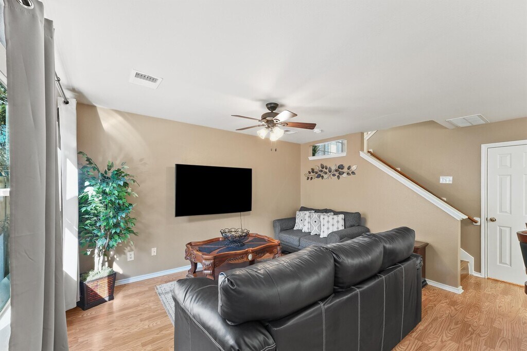 Beautiful FULLY FURNISHED townhouse in desirable Village of Alden Bridge. Home offers a great flow and lots of natural light. Well maintained and in immaculate condition. Owners have thoughtfully furnished the property to brew simple morning coffee to making fabulous dinners. High quality wood,bamboo,and tile flooring throughout main areas. Large primary bedroom and closet. Primary bath offers double sink and linen closet. Attached two car garage with driveway and a quaint backyard space. Zoned to highly acclaimed schools in The Woodlands and minutes to grocery,dining,and entertainment! MLS# 42932985