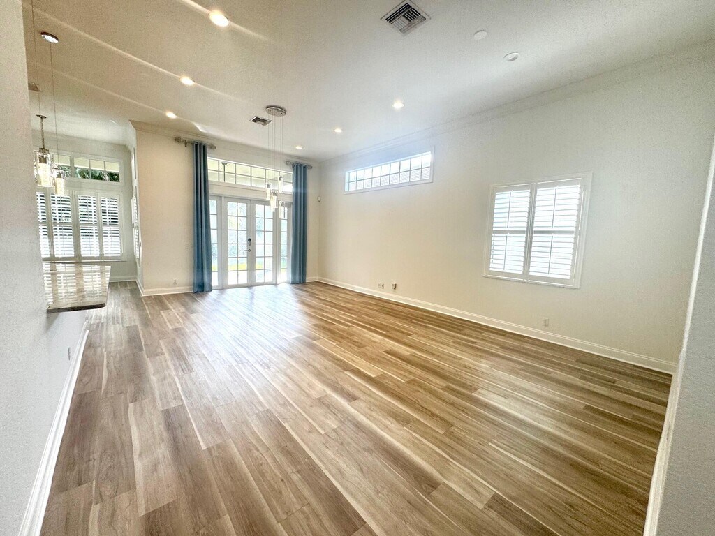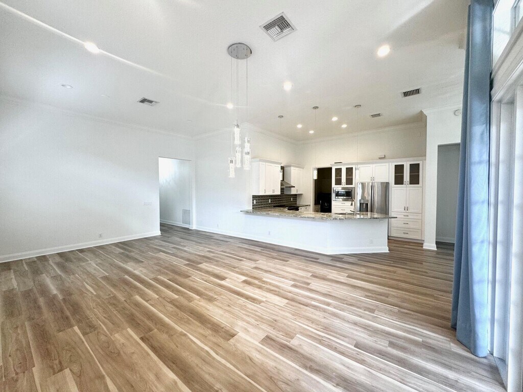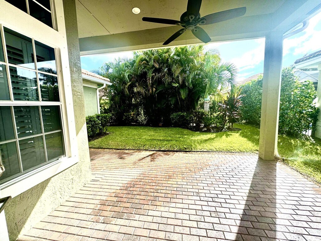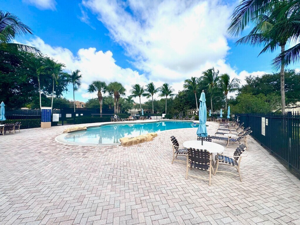 Beautiful light-filled, updated, generously sized 3-bedroom, 2-bath home in highly desired Jupiter. Split floor plan for privacy, soaring high ceilings, & fresh paint & plantation shutters throughout. Open-concept layout is perfect for everyday living & entertaining. The spacious kitchen shines with white cabinetry, stainless steel appliances, large peninsula & pendant lighting, ideal for casual dining. The primary suite offers a peaceful retreat with tray ceiling, walk-in closet, and luxurious en-suite bath complete with separate soaking tub & shower. Enjoy the grand great room, full-size washer/dryer, private backyard oasis with lush landlord-maintained landscaping-no yardwork! 2-car garage, large driveway for extra parking. Paseos resort pool, tennis, walking paths and more.