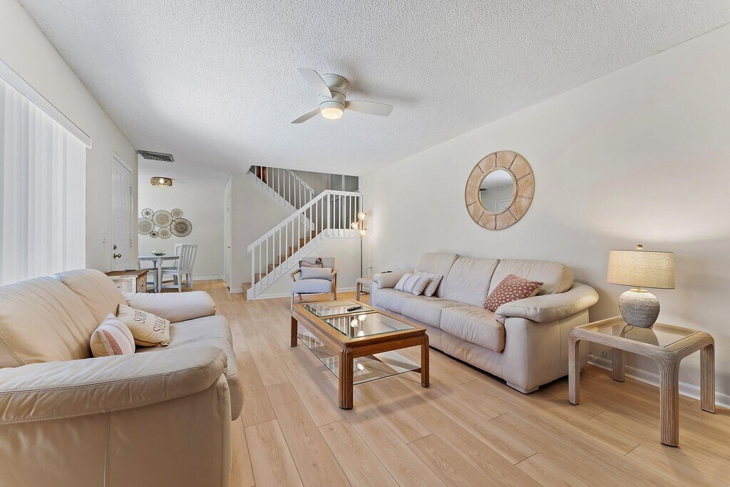 Enjoy this fully equipped and appointed townhome in the Highly desirable community of The Lakes at the Bluffs in a fabulous walk-to-the-Jupiter beach, shopping and restaurants location Season 2026 for only $5800/mo! The community amenities include pool with large deck along with shaded lounging area, jacuzzi, tennis courts and outdoor racquetball and playground/tot lot.