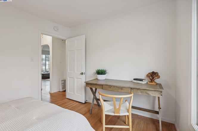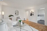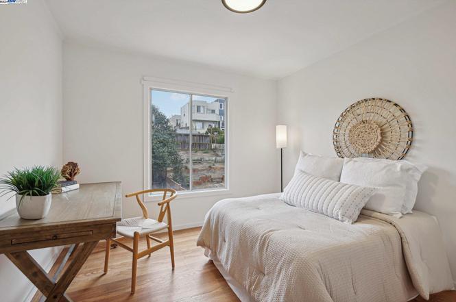 This inviting home, located just one block from Robert Louis Stevenson Elementary School, offers the perfect blend of modern updates and convenient location. Step inside to discover two cozy bedrooms and a bright, beautifully updated bathroom. The kitchen features new quartz countertops and stylish new tile floors with a skylight to bring in light to the eat-in dining. Rich original hardwood floors extend throughout the main living areas and bedrooms, adding a touch of elegance and warmth.