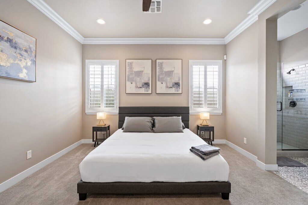 Feel at home in this spacious two-bedroom, 2.5-bath apartment with a loft, located in a gated community. This property offers a two-car garage, a back patio with a fenced yard, and is pet-friendly. Enjoy the convenience of a fully furnished space with central AC and a full kitchen and dining set. The apartment features a full kitchen equipped with a full fridge, a 4-burner stove, a microwave, an oven, a dishwasher, an air fryer, a coffee maker, a blender, a toaster, a water kettle, and wine glasses. Relax in the living area with four smart TVs and take advantage of the in-unit washer and dryer. Pets are welcome with a non-refundable fee of $150 per pet. The community offers a pool across from the property for residents to enjoy. Located just 4.7 miles from Downtown Gilbert, this apartment offers easy access to local attractions such as the Chandler Center for the Arts, Mesquite Groves Aquatic Center, and Chandler Fashion Center. It's also conveniently situated near major airports and hospitals, making it ideal for travelers and professionals. The apartment is equipped with a smart lock and lockbox for secure, easy access through a private entrance. Smoking and parties are not allowed on the premises. [SI]