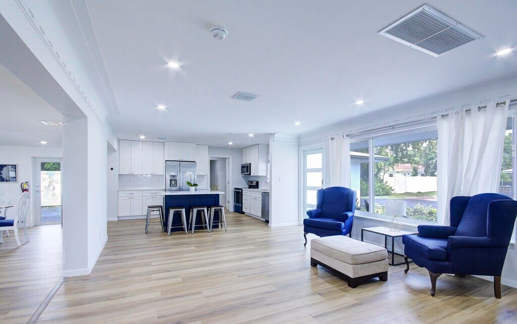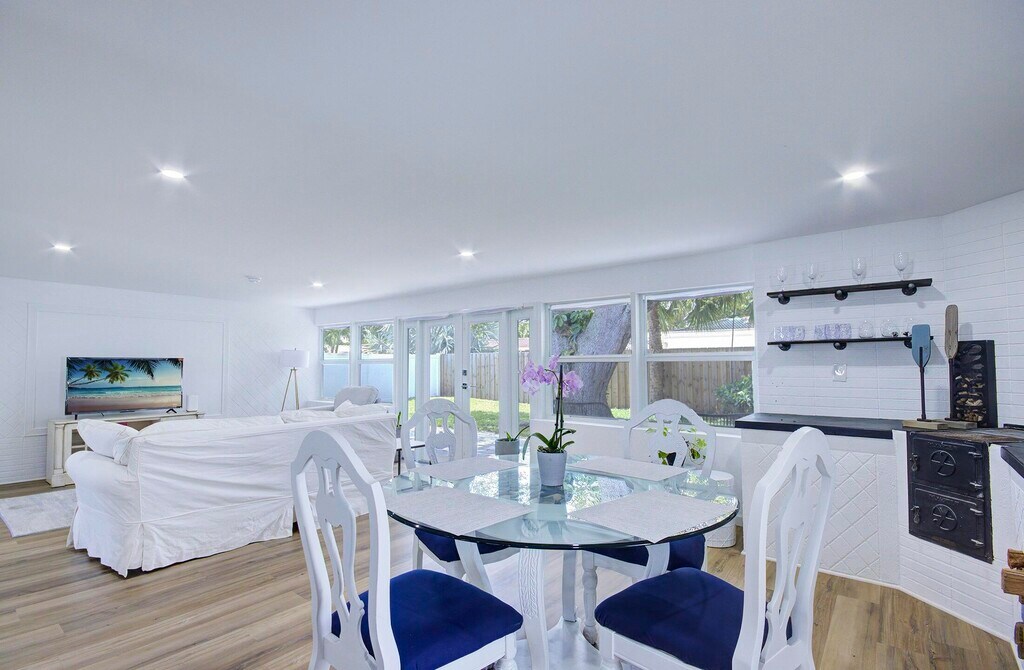 Available Furnished or not furnished, lease terms negotiable. Beautifully Remodeled home on a quiet street with no thru way traffic in Lighthouse Point. Upon entering the home you are welcomed with gorgeous flooring flowing throughout the home, tons of light entering the home. New Impact windows and doors. New 2025 Roof, New Kitchen cabinets, quartz countertops, and SS appliance package. New Ac, New Electrical panel and Service. The home boasts 3 large bedrooms with oversized closets, 3 Bathrooms. Walk out your french doors into the private fully fenced backyard