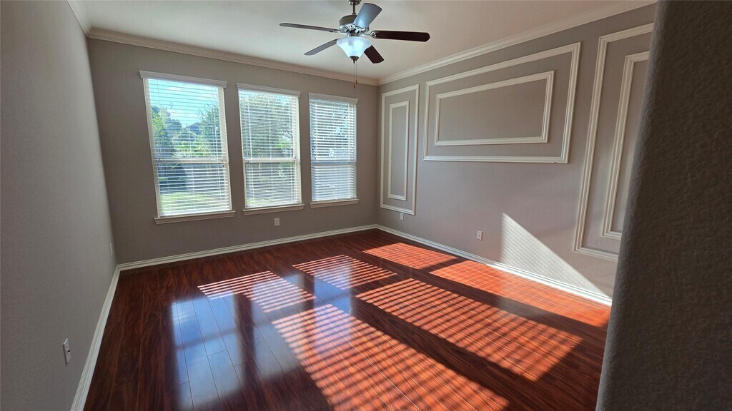 Don’t miss this beautifully maintained former model home in the quiet,sought-after Meadowview Farms community! Perfectly positioned on a corner lot with no back neighbors,this home offers privacy and easy access to both Hardy Toll Road and I-45—ideal for commuting. Step inside to find laminate wood flooring throughout the first level and a spacious Master Suite featuring granite countertops and elegant crown molding. The gourmet kitchen is a standout,with 36” designer cabinetry with under-cabinet lighting,granite countertops,stainless steel appliances,and a wraparound breakfast bar—perfect for casual meals or entertaining. Additional interior highlights include: • 2” faux wood blinds • Ceiling fans throughout. Enjoy outdoor living with a covered back patio,and unwind on the balcony off the front of the home. A sprinkler system adds convenience to this beautifully landscaped property. MLS# 2650437