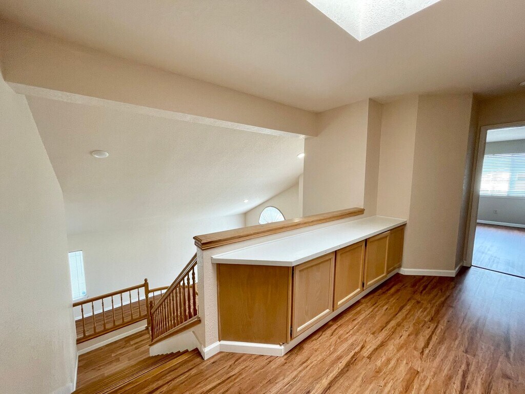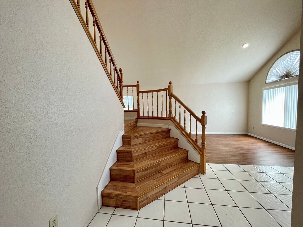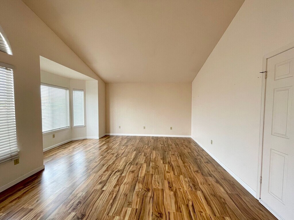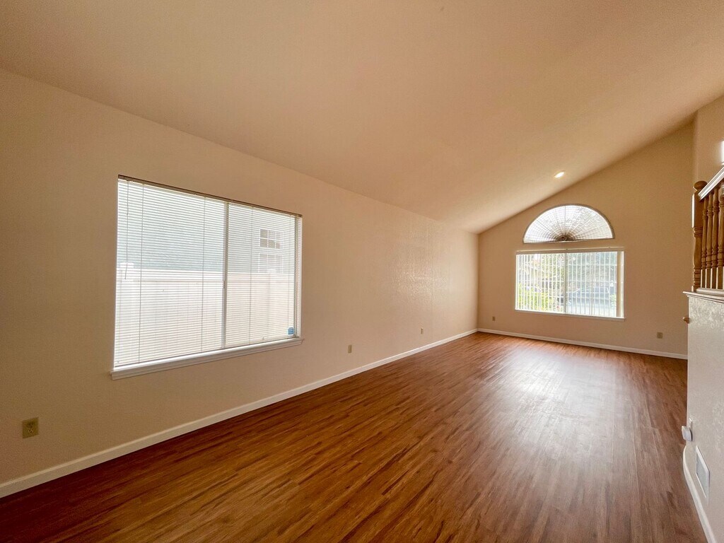 Apply now: This spacious home has 4 bedrooms, 3 bathrooms and a lovely backyard! Enter into the property to be greeted by an entry way that leads into the open concept living room and dining room, that both offer so much natural light. The dining room has a doorway into the kitchen, that has an additional breakfast nook, and so much cabinet space! The second living area is just off the kitchen with a fire place and a sliding glass door that offers direct access to the backyard. On the first floor, you will also find the first bedroom, a laundry room with washer and dryer hookups, and a full bathroom with a walk in shower. Just up the stairs is the master bedrooms that has beautiful large windows, and an en suite bathroom! The walk in closet offers plenty of storage space and the bathroom has double vanity sinks, a bathtub and walk in shower. The third and fourth bedroom, and another full bathroom can also be found upstairs. The house has a large backyard with a covered patio, built in bench seating and a grass lawn. Attached three car garage.
