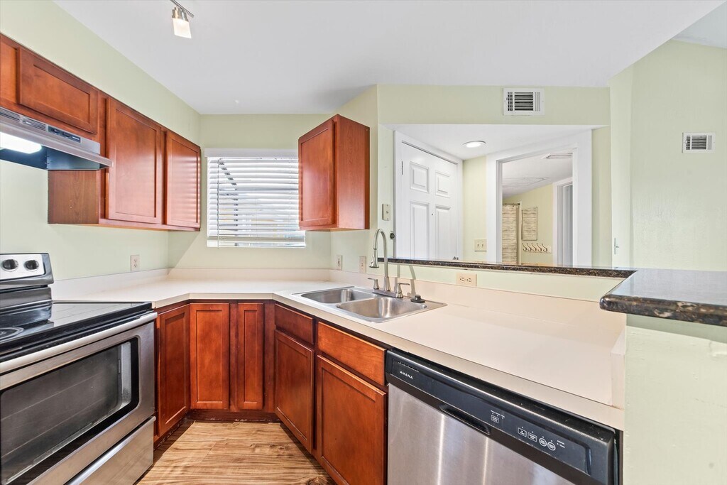 Nicely updated, unfurnished condo overlooking lake and close to community pool, hot tub, on site laundry, workout room and ultra convenient to all area amenities, the beach, etc. Top floor, so no one above you and features higher, vaulted ceilings for a more open feel. Rent includes basic cable.