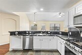 Home did not flood. Nice,charming,clean and a perfect 1-story rental house in the quiet subdivision of Bear Creek Meadows. Looking for a caring family to call this place their home. Brand new wood flooring in Living & Dining room combo,family & breakfast room,hallway and all bedrooms & Summertime paint. New black quartz countertops in kitchen and 2 BAs,cabinets repainted white with knobs and recess lightings. House sits high up from the street,beautiful landscaping. New water heater 2025,New roof replaced in 2015,new AC condenser in July 2017 (serviced 8/2025) and added whole home high end water filtration system. Cypress-Fairbanks ISD,high & dry,home did not flood and ready for move-in. NO SMOKING! Pets & Vouchers,case by case. Room sizes are approx. and should be verified. MLS# 31584764