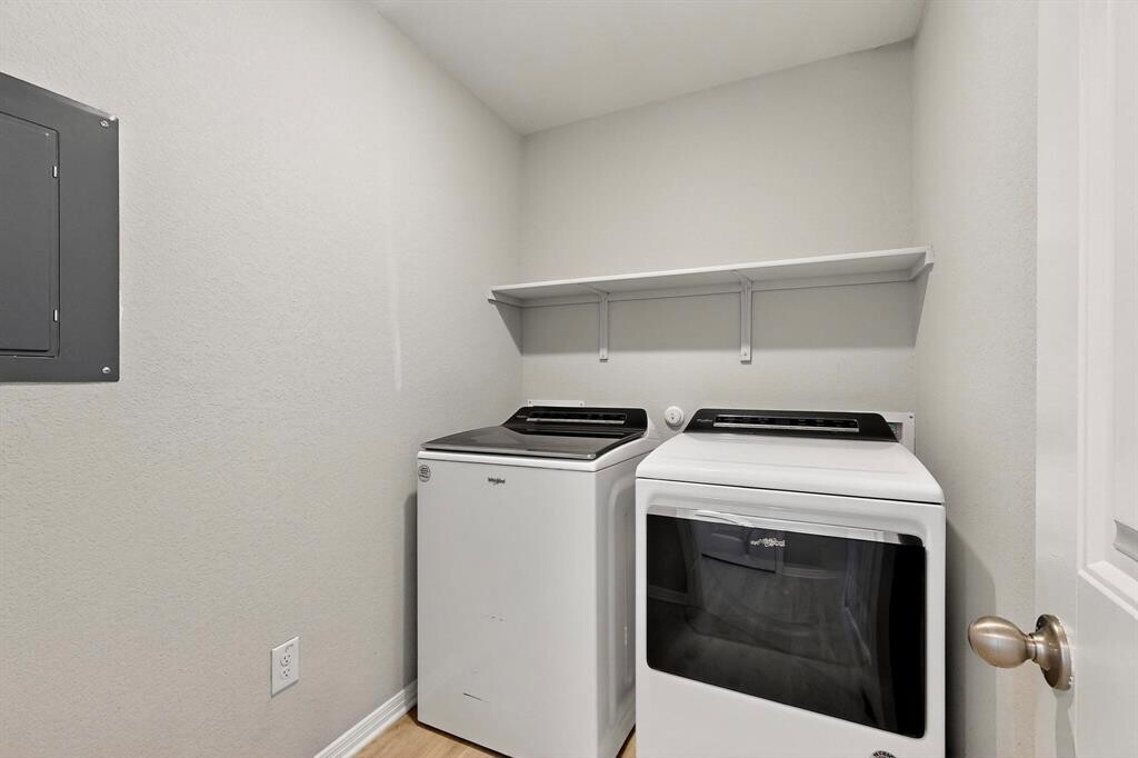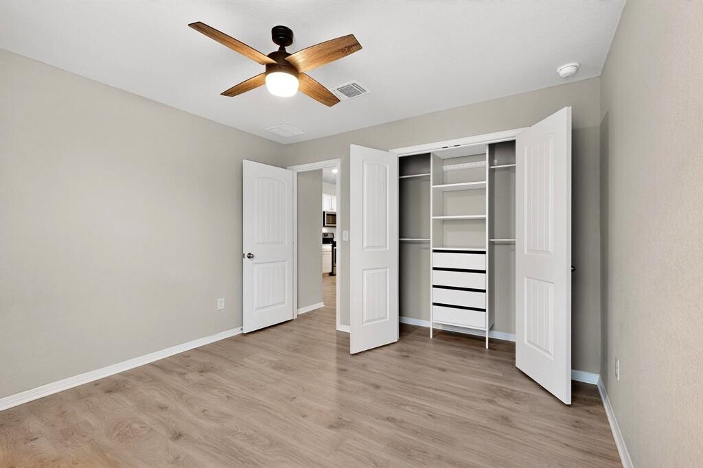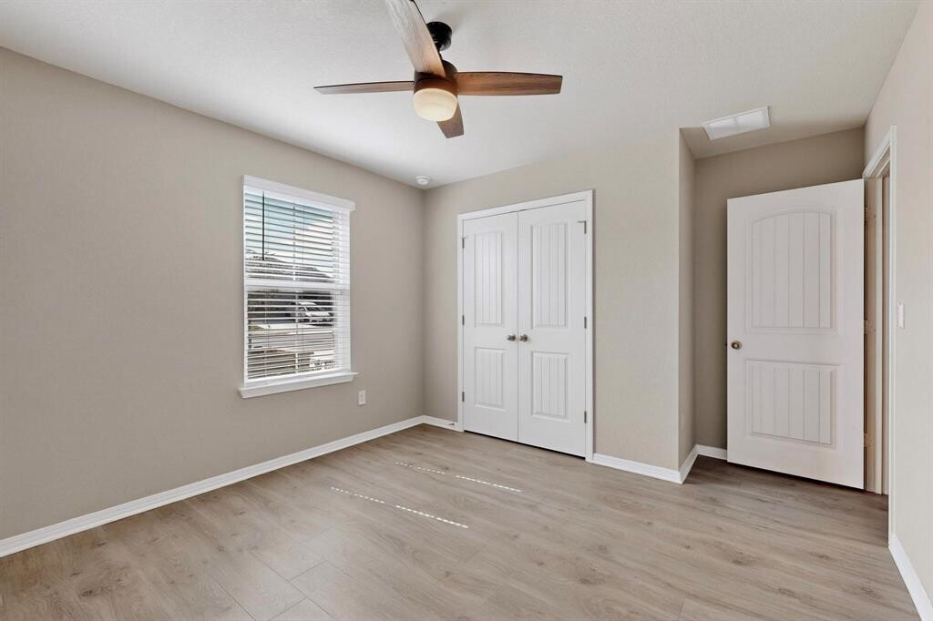 Welcome to 19516 Abigail Fillmore Rd, a beautifully maintained single-story home just 5 minutes from the new Manor Crossing Shopping Center. This move-in-ready residence offers a bright, open floor plan with laminate flooring throughout—no carpet anywhere! The kitchen features granite countertops, stainless-steel appliances, and plenty of storage. Both secondary bedrooms include built-in closet systems, and ceiling fans are installed throughout the home for added comfort. The washer, dryer, and refrigerator are all included, making your move effortless. The spacious backyard with a covered patio is perfect for entertaining or relaxing. Located near major highways, schools, and shopping, this home combines modern style with everyday convenience. The swing set in the backyard will be removed before tenant moves in.