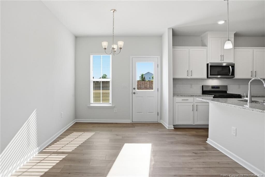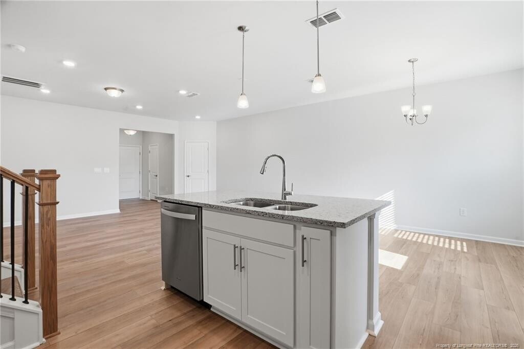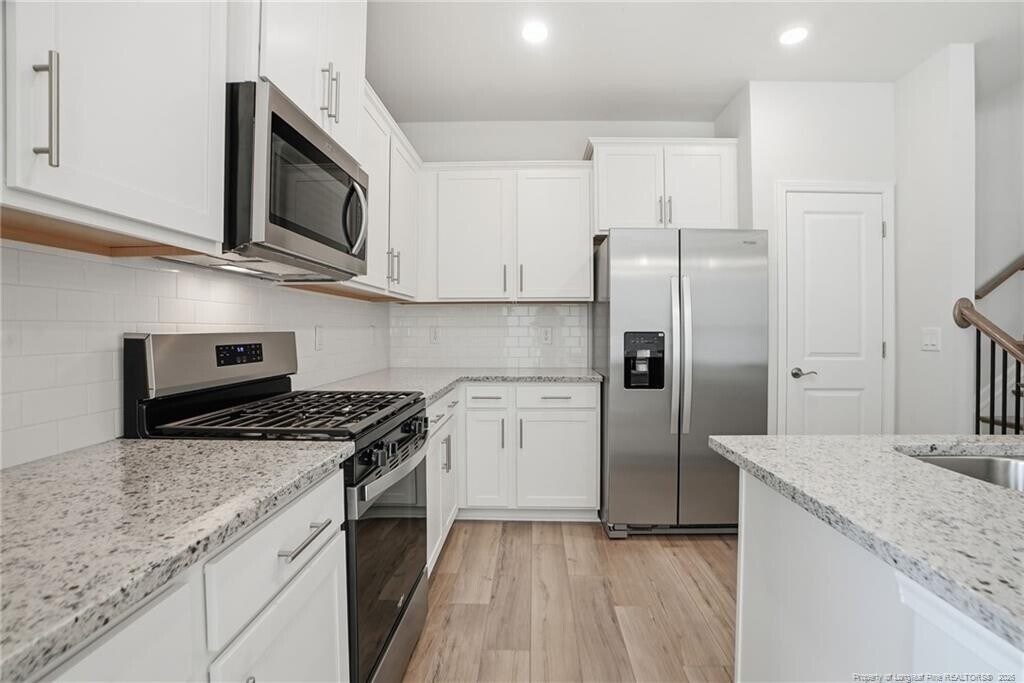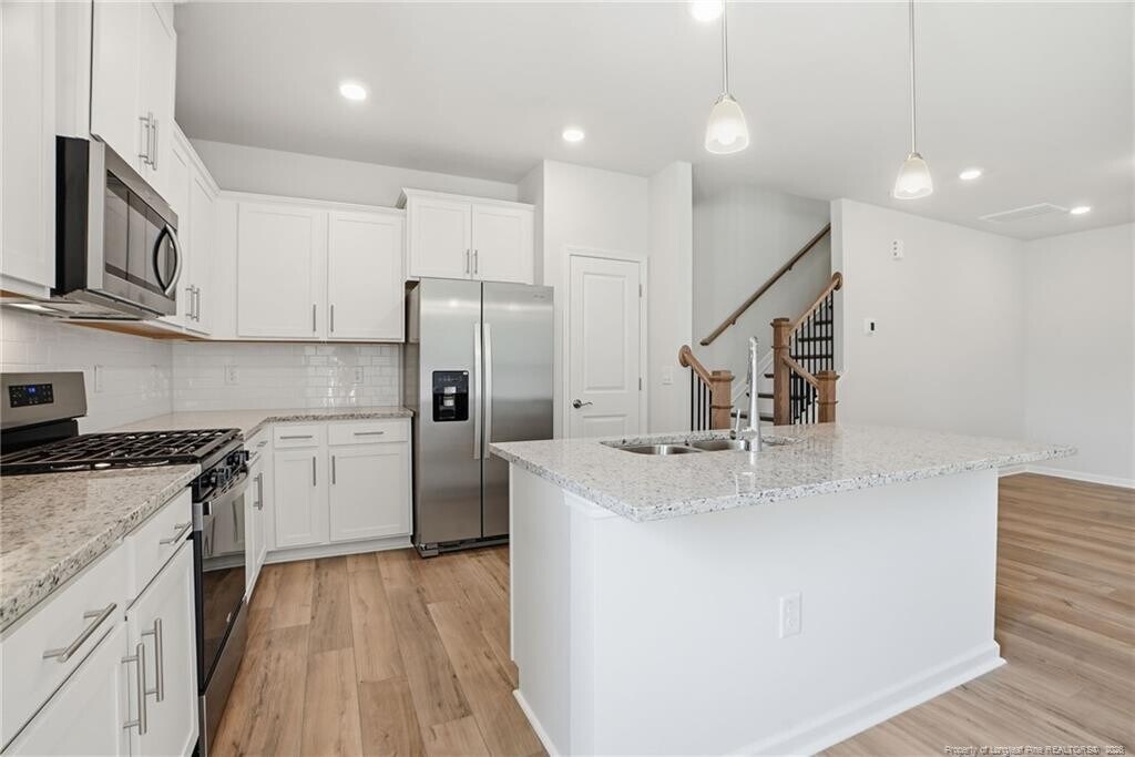 Never lived in Townhouse in Saunders Farm community. Minutes from downtown Fuquay Varina and 30 minutes from Raleigh; Easy access to I-540 access. First floor features open concept with plenty of natural light. Kitchen has brand new appliances, gas cooktop and spacious island with sink. All bedrooms on 2nd floor as well as laundry room. Owner's suite features spa like bathroom with large closet. Located and zoned for Wake County Schools. Community features community pool(coming soon), dog park, playground, and walking paths.