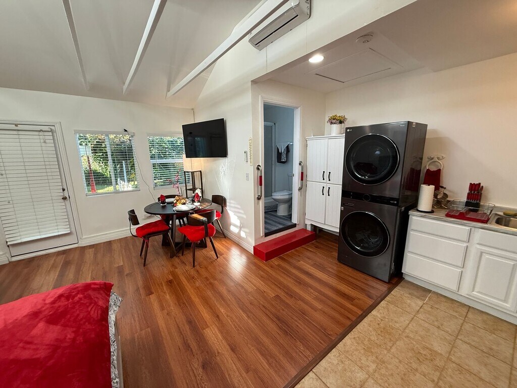 Discover comfortable living in this beautiful San Fernando Valley rental studio, ideally situated in the city of Tarzana. This unit offers 1 bathroom and 450 sq. ft. of fully furnished living space. Built in 2021, this modern unit is perfect for stress-free living. Key Features: Address: 19521 Friar Street, Tarzana, CA 91335. Availability: Now. Pet Policy: No Pets. Included Services (ALL UTILITIES!): Water Included, Trash Included, Gas Included, Electricity Bill Included, Internet Bill Included, Gardener Services Included, and Soft Water Services Included. Interior Highlights: Step inside this Fully Furnished studio featuring Mini Split Heat and A/C, Recessed Lighting, and Vaulted Ceilings. The entire space boasts modern Laminate Flooring. The Remodeled Kitchen is equipped with Stainless Steel Appliances and includes a Refrigerator. Bedrooms include Mirrored Closet Doors. A Washer/Dryer is also included. Exterior & Amenities: Enjoy the outdoors with a Gated Yard and a dedicated Outdoor Sitting Area. The property features Fruit Trees and has convenient Alley Access. Best of all, all utilities and services are included in the rent. Important Information: No Pets. This home is Available Now.