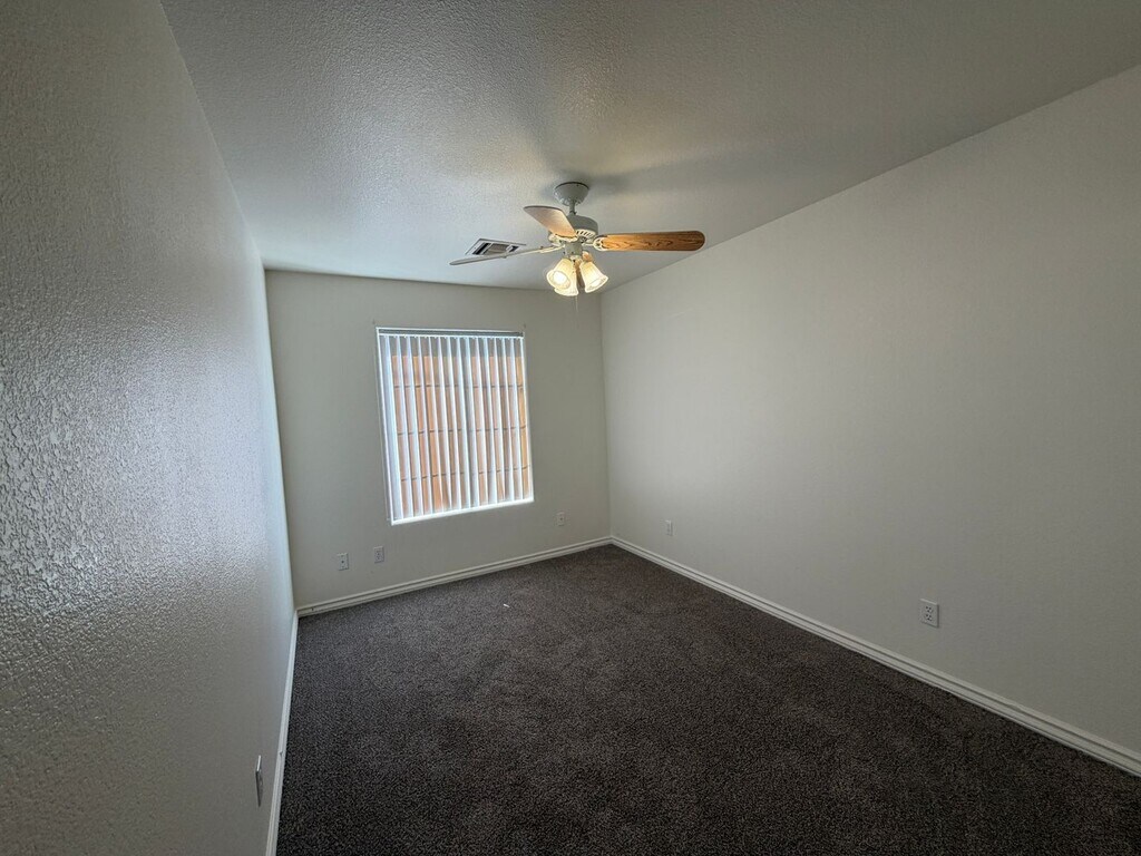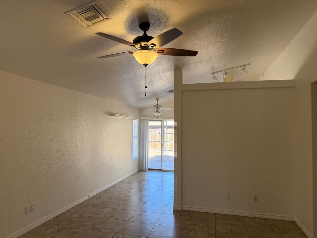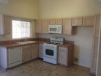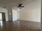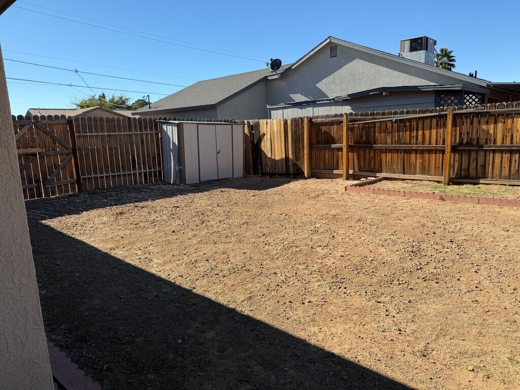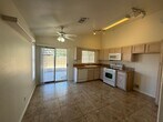 Welcome to this stunning 3-bedroom, 2-bathroom home located in the vibrant city of Kingman, AZ. This property boasts a spacious 2-car garage, perfect for your vehicles or additional storage. Step inside to find an open concept layout with a split floor plan, offering a harmonious blend of privacy and communal living. The living room features a cozy gas fireplace, perfect for those chilly evenings, and a sliding glass back door that leads to a fenced backyard, providing a safe and private outdoor space. The kitchen features a gas stove/oven, dishwasher, and tiled countertops. Each room is equipped with fans, ensuring comfort throughout the seasons. The vaulted ceilings add a touch of elegance and spaciousness to the home. The front yard is landscaped, enhancing the home's curb appeal. This home is a perfect blend of style, comfort, and convenience. This home is located in the middle of town with easy access to shopping.