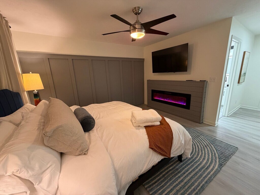 Welcome to a thoughtfully designed ranch-style retreat in Westfield, where family-friendly comfort meets space to gather, work, and unwind. Located on a quiet residential street just minutes from Grand Park and right off the 191st Street exit on US-31, this home offers easy access without the noise or congestion. Westfield is known for being clean, safe, and family-focused, and this home reflects that spirit throughout. Easy, One-Level Living This is a single-story ranch home, making it easy to navigate for all ages. While not formally handicap accessible, the layout is simple, open, and stair-free throughout the main living spaces and bedrooms. Sleeps 8 | Four Private Sleeping Areas Primary Suite: King bed + private ensuite with walk-in tiled shower Bedroom 2: Queen bed + dedicated workspace (great for work travel) Bedroom 3: Queen bed Garage Game Room: Queen Murphy bed Each sleeping space is private, making this home ideal for families, groups, and multi-generational stays. Bathrooms Primary Ensuite: Walk-in tiled shower Full Guest Bath: Tub/shower combo with tile surround, located next to Bedrooms 2 & 3 Half Bath: Conveniently located near the garage game room Hair dryers provided. Kitchen + Dining Designed for real use and longer stays: Electric range Oven + microwave Dishwasher Refrigerator with ice & water dispenser Drip coffee maker Pantry Ample counter space and storage Whether you’re cooking full meals or grabbing breakfast before a tournament, the kitchen is practical and easy. Living Room An open, inviting space centered around comfort: Large sectional seating Wood fireplace (just for looks) 55” Roku TV Open sightlines to kitchen and dining Perfect for movie nights or quiet evenings in. Garage Game Room (Heated & Cooled) A fully finished bonus space that feels intentional, cozy, and fun: Ping pong Darts Basketball (driveway) 55” Roku TV Queen Murphy bed The space is heated and air-conditioned with a mini-split system. The insulated garage door does not open and has no motor, making this a true year-round living space. Laundry Room Full-size LG washer & dryer with: Laundry pods Wool dryer balls Iron & ironing board Laundry basket Washer includes a gentle spin cycle, ideal for delicate items. Outdoor Space Large fully fenced backyard (6’ privacy fence) New concrete patio and hot tub coming Spring 2026 Patio table and chairs and propane fire pit are in the shed. Great for kids, pets, and relaxed outdoor time. Pets Welcome Up to 2 pets allowed with a fee Fully fenced yard makes this a great option for pet owners Parking Driveway parking for up to 4 vehicles No street parking Garage is game room only (no parking) Location Minutes to Grand Park Sports Campus Near MacGregor Park & Grand Plaza Park Close to Riverview Westfield Hospital IU North & St. Vincent Carmel within 10 minutes Easy access to Carmel, Westfield, Noblesville, and Kokomo via US-31 Perfect for All Types of Stays Family-friendly (Westfield shines here) Group-friendly with four private sleeping areas Work travel-friendly with a dedicated workspace and quiet surroundings Fast, reliable Wi-Fi Three 55” Roku TVs (Living Room, Primary Bedroom, Game Room)