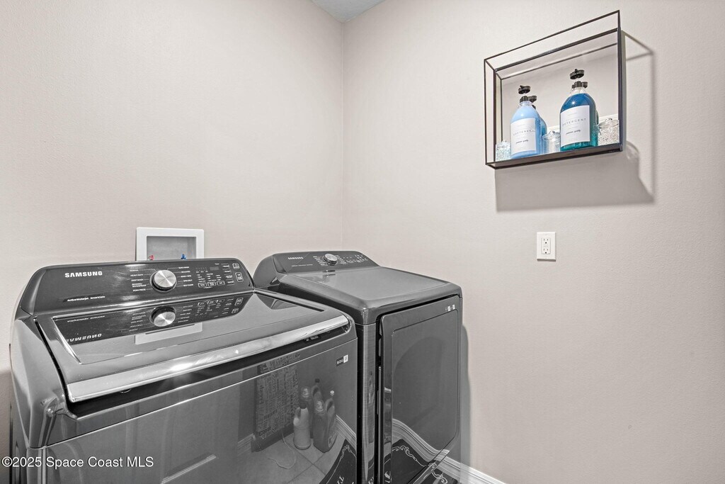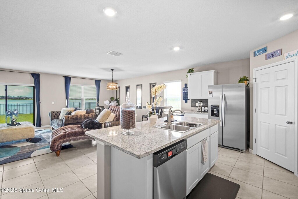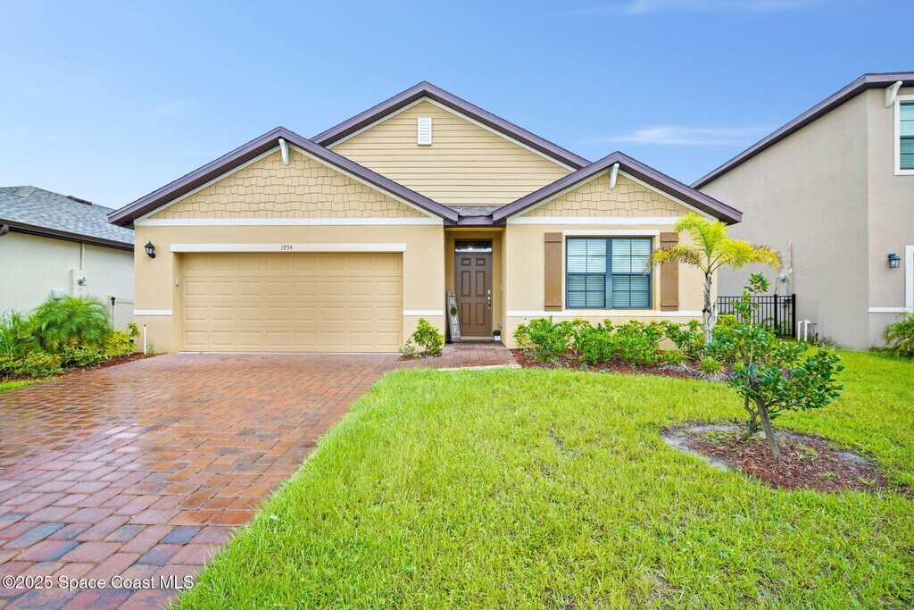 Enjoy the perfect blend of style,space,and smart living in this gated Space Coast home. Conveniently located just minutes from I-95 and next to the brand-new Publix plaza. The open-concept design seamlessly connects the living room,dining area,and kitchen,creating an ideal space for entertaining. The kitchen features quartz countertops,stainless-steel appliances,a walk-in pantry,and a large island with a breakfast bar. Start your mornings with coffee while enjoying the lake view. The spacious primary bedroom includes an oversized walk-in closet,providing ample storage for all your needs. Equipped with smart home technology,this home allows you to manage your space from anywhere. The hurricane shutters are stored in the garage.