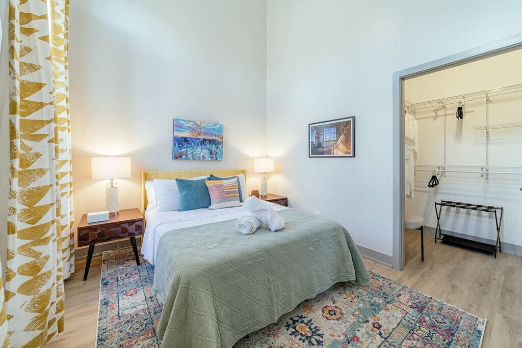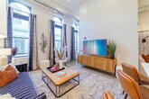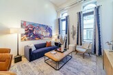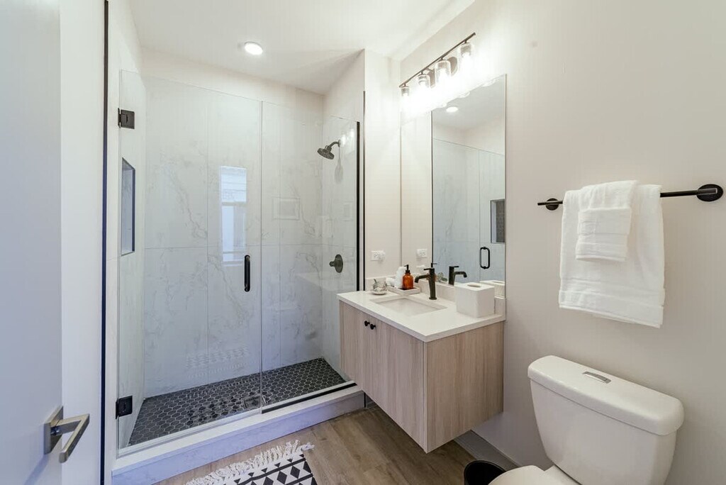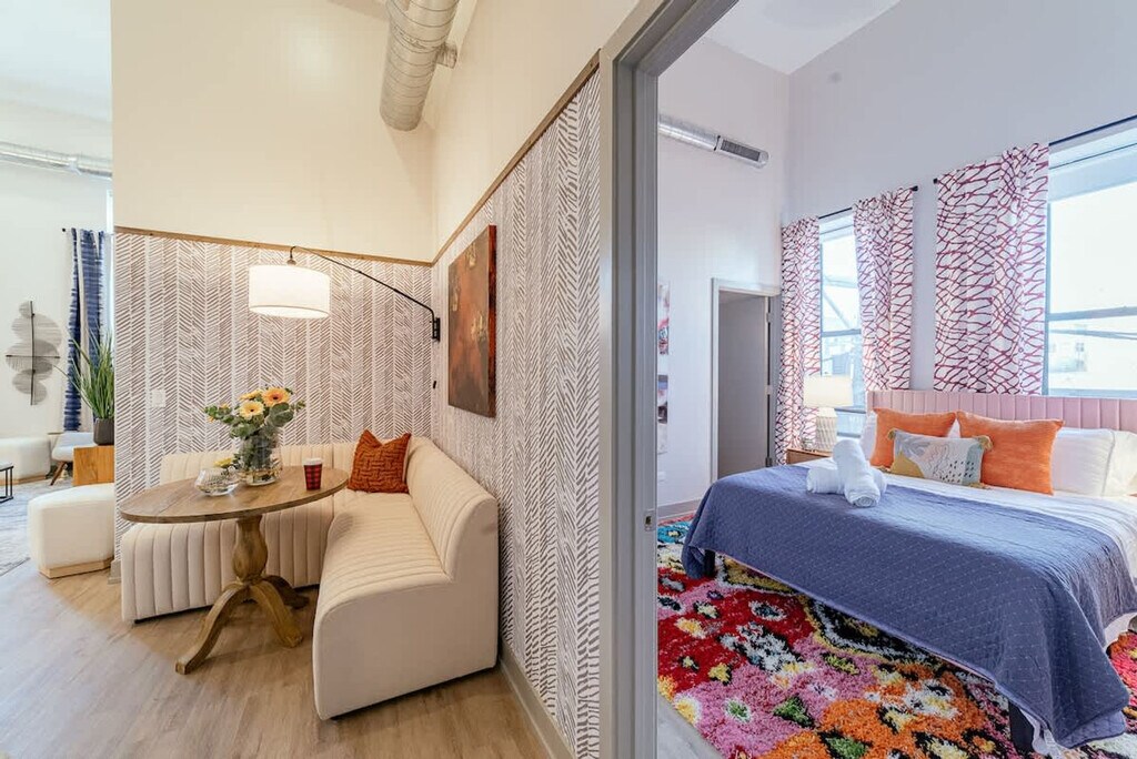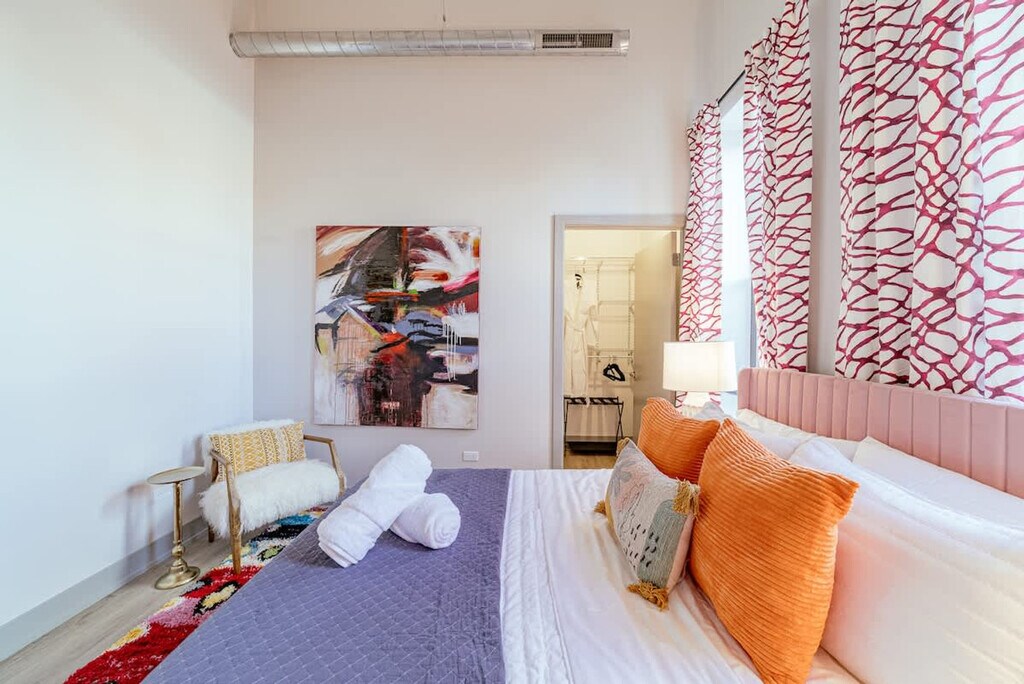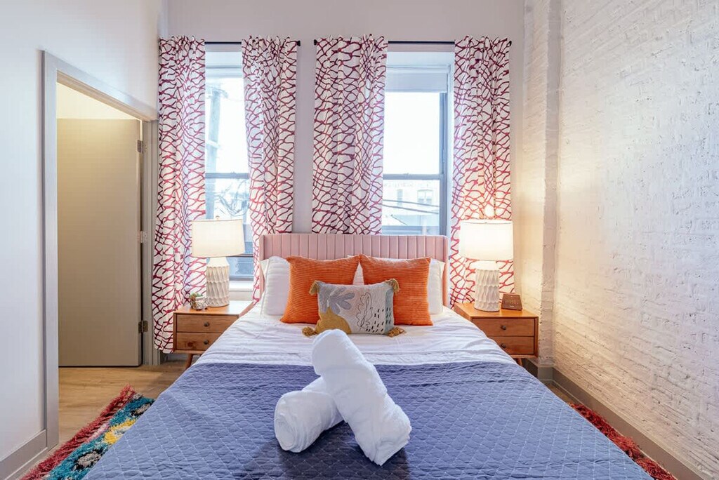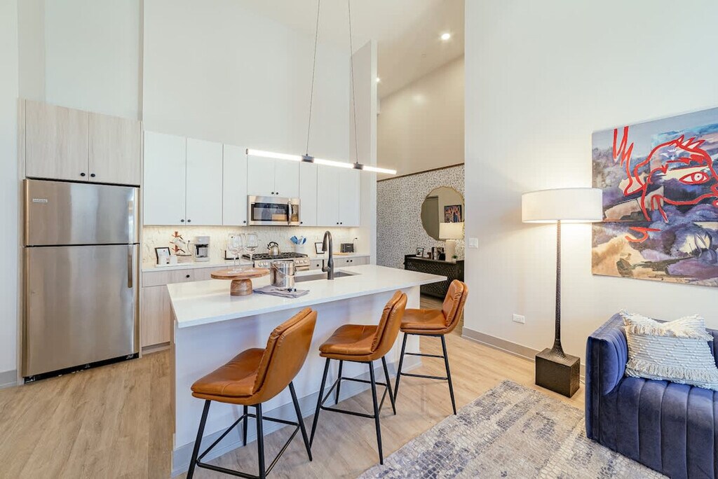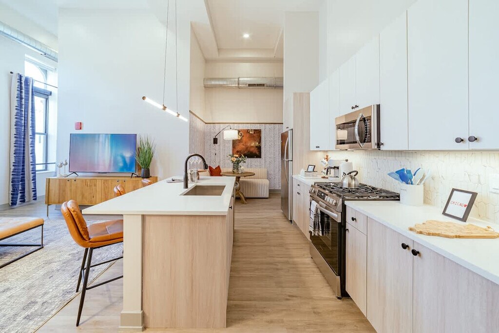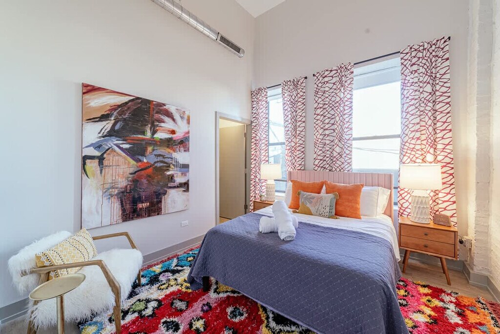 Feel at home in this beautifully remodeled 4-bedroom, 2-bathroom apartment in Chicago's iconic Wicker Park neighborhood. This private apartment was artfully designed with a modern aesthetic combined with a few quirky details, creating a chic yet whimsical vibe. Inside, you'll find an in-unit laundry room with a washer, dryer, iron, and board, a bright and airy living room with a 55" Fire TV, and an open-concept kitchen with a quartz kitchen island, stainless appliances, and a cozy breakfast nook. The apartment also features high ceilings ranging from 9-15' and luxury LVT flooring throughout. Parking is not included, but SpotHero is recommended to reserve a spot nearby before you arrive. During your stay as a guest, you receive free access to The Metropolitan, a chic members-only club located on the 66th and 67th floors of the Willis Tower, which includes co-working space, a bar, and a restaurant. Situated at the intersection of Milwaukee, Damen, and North, the location couldn't possibly be better. Countless trendy dining options, bars, and shops are just steps away, as well as the Damen Blue Line 'L' station, which links you directly to O'Hare in approximately 32 minutes. There is no smoking of any kind in the apartment, and your reservation will be automatically and immediately canceled if there is any smoking reported. There will also be an automatic $500 cleaning fee if there is any smoke smell inside of the apartment. Quiet hours are from 10 pm to 8 am. There is an automatic $100 late check-out charge if you're still in the property 20 minutes after check-out. USPS mail deliveries are not allowed during your stay. There is a $45 fee if you lock yourself out or lose your key. [SI]