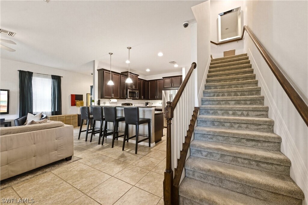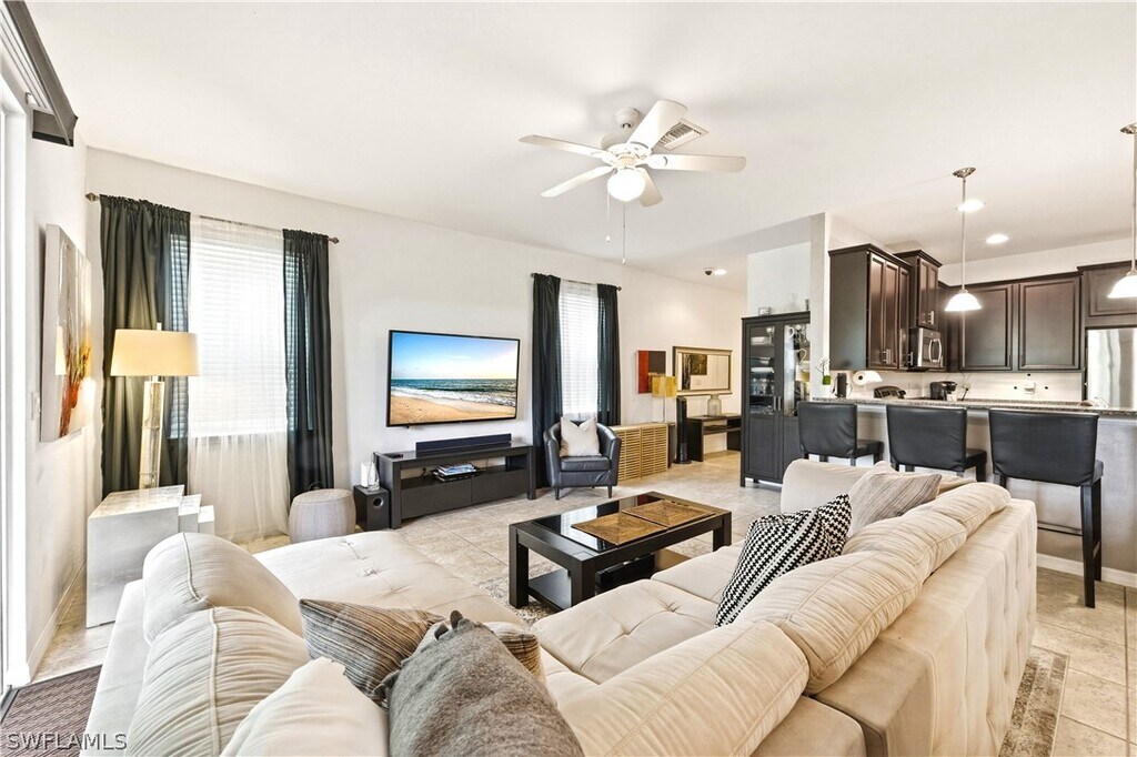 ALL INCLUSIVE & TURNKEY rental available starting May 1st. This beautifully updated carriage home in the Somerset Townhomes community offers a truly elevated rental experience in the heart of Fort Myers & Estero. Move in ready,this residence blends modern design with everyday comfort,creating a space that feels both stylish and inviting from the moment you walk in. Inside,you will find a fresh,contemporary interior featuring updated flooring,a modern color palette,and upgraded fixtures throughout. The open concept layout creates a seamless flow between the living,dining,and kitchen areas,making it ideal for both relaxing and entertaining. The renovated kitchen is a standout,showcasing sleek countertops,updated cabinetry with ample storage,and stainless steel appliances. This spacious home offers three bedrooms and two and a half bathrooms,with a loft,including a well appointed primary suite designed for comfort and privacy. The upstairs layout also features a convenient laundry area,adding to the home’s functionality and ease of living. Step outside to an oversized screened lanai,larger than others in the community,overlooking the lake with western exposure. It is the perfect setting to unwind,entertain,and take in Southwest Florida’s beautiful sunsets. Ideally located,this home offers easy access to shopping,dining,top rated schools,and major roadways including I 75. Just minutes from Florida Gulf Coast University,Southwest Florida International Airport,and Miromar Outlets,the location is perfect for both convenience and lifestyle. Residents also enjoy access to a community pool,adding to the appeal of this low maintenance living opportunity. If you are looking for a turnkey,all inclusive,and move in ready rental that offers modern finishes,a functional layout,and an unbeatable location,this is one you do not want to miss. Schedule your showing today!