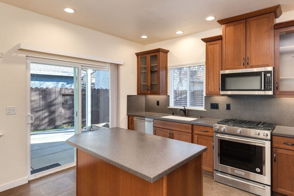 Located across the street from the New Merriam Park and walking distance to Baroni Park, East Chico Location. This home has central heat and air, radiant heated kitchen floor, red oak flooring through out the home. A long attached 2 car garage 36x10, with fenced back yard with raised garden beds. The interior is freshly painted, Kitchen has stainless appliances as well as Corian counter tops and a center island for additional counter space. All cabinets are soft close doors and drawers. A slider to the back yard opens up on a covered patio with skylights and ceiling fans. Off the kitchen is a 1/2 bath. Upstairs is a compass rose to help with your orientation. All bedrooms are upstairs, the primary bedroom has an ensuite bathroom, along with a walk in closet with a lighted vanity. The two other bedrooms share the second bathroom upstairs. Ceiling fans in all of the bedrooms, Large cathedral ceiling in the living room with a remote control fan. The front yard is landscaped with water wise plants, easy care. The neighborhood has sidewalks and an excellent walk score. The back yard has two gates one on each side of the house for easy access. Month to Month rental terms.. Qualified applicants will be shown the property after submitting an application. This is a placement property where the owner will be self managing after a qualified tenant is found. Small pet considered. Contact Select Property Management for additional information or apply through our website at