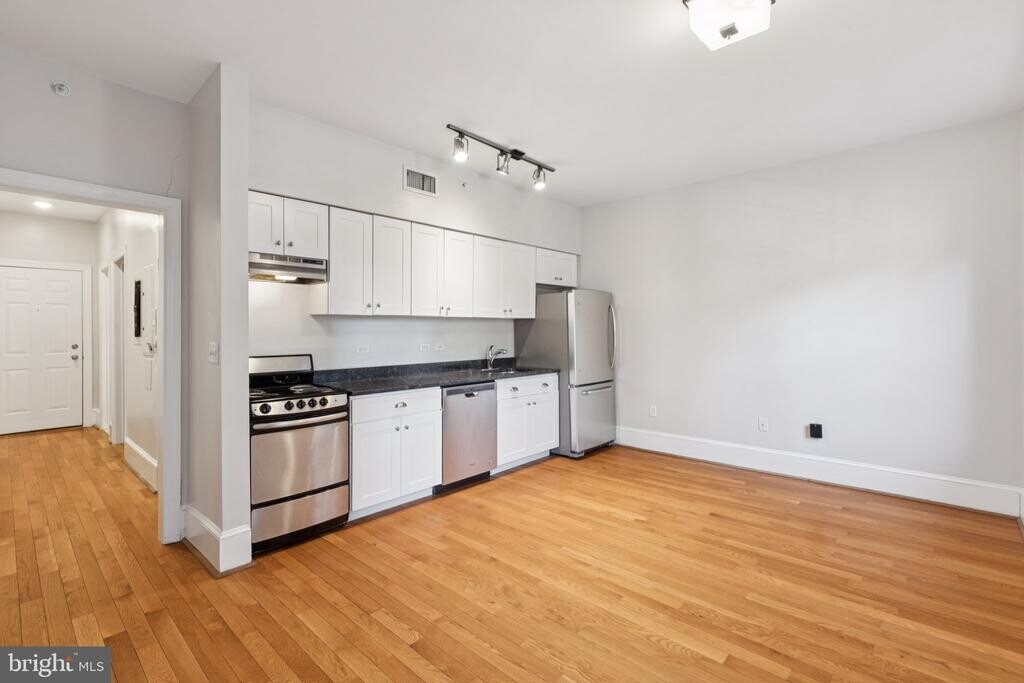 Boutique Rittenhouse Square apartment building with a secure entry and shared rooftop deck. This home is a like-new one bedroom residence featuring hardwood floors; spacious living/dining area with two large windows; an open kitchen with sleek white cabinetry, stainless steel appliances, and granite countertops; beautifully appointed bathroom with modern vanity and tub shower with white tilework; and a stackable washer and dryer. Half a block from Rittenhouse Square, 1955 Locust is conveniently located steps from some of the city's best restaurants, shopping, the major office corridors, and public transportation.