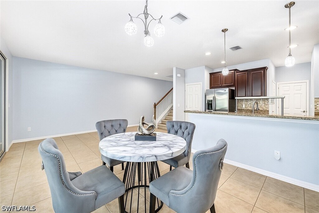 Vacant Property!!! Welcome to this stunning townhome in the highly sought-after Somerset community of Estero. This meticulously maintained home boasts 3 spacious bedrooms,2 full bathrooms,and a convenient upstairs laundry room. Step through the formal entry into the open,inviting living spaces,including a dining area,great room,and a tylish kitchen with wood-faced cabinetry featuring 42-inch uppers,granite countertops,nd stainless stee appliances. The first floor also offers beautiful tile flooring throughout,a 1/2 bath,ample storage,and a screened lanai overlooking the community lake with western exposure - the perfect spot to enjoy Florida's breathtaking sunsets. This home has been recently updated with new carpet,fresh paint,and additional closet storage space,adding to its move-in-ready appeal. The master suite provides a relaxing retreat with dual sinks,a separate tub and shower,and generous closet space. With large closets throughout the home,storage is never a concern. The townhome's location Is Ideal -within walking distance to Three Oaks Elementary School and just a short drive to Florida Gulf Coast University (FGCU),Southwest Florida International Airport (RSW),Miromar Outlets,and a variety of shopping and dinning destinations. Positioned between Fort Myers and naples this home also offer easy access to I-75,making it perfect for both convenience and accessibility. The Somerset community features low HOA fees and access to a community pool,adding to the appeal. Don't miss out on this incredible opportunity schedule your showing today and make this beautiful townhome yours before it's gone!