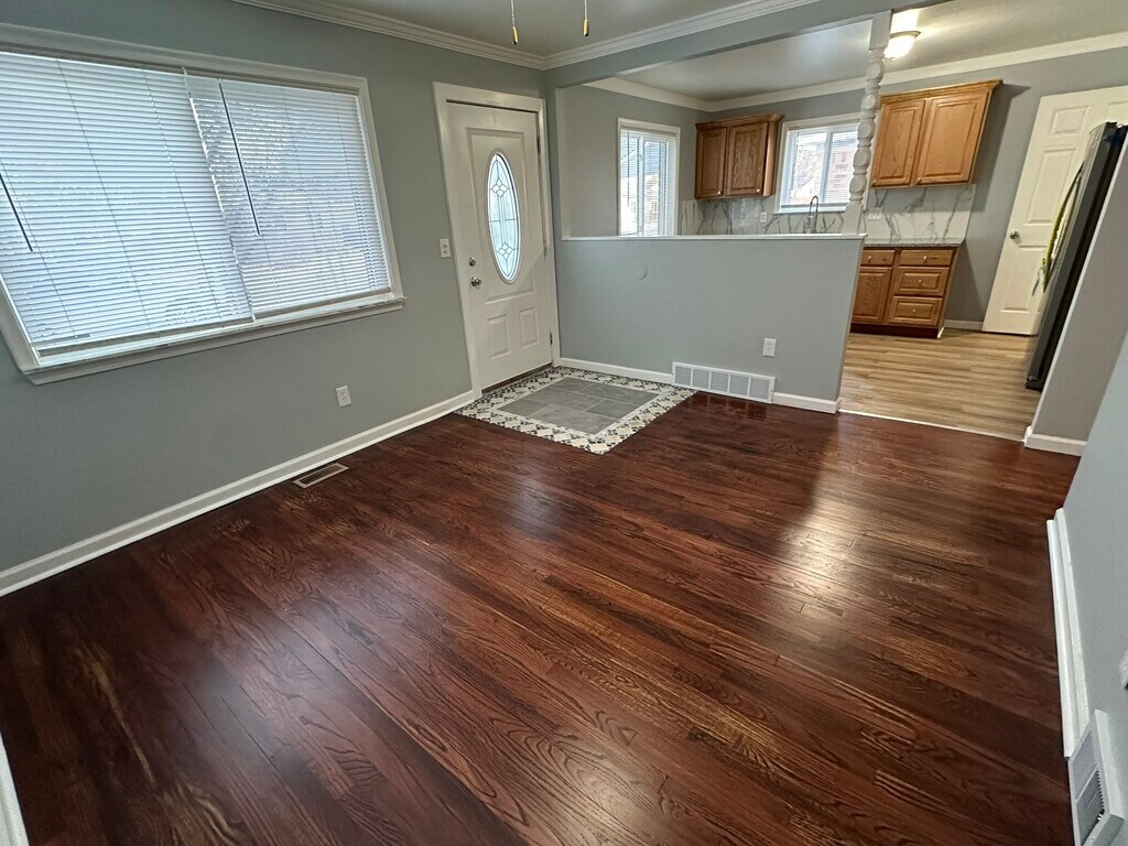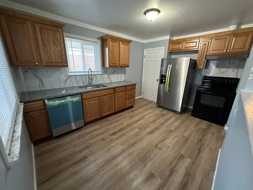**Nice 3 bedroom and 1 bathroom ranch house** Home has been fully remodeled, new kitchen, new bathroom, refinished flooring and clean painted basement. Home is furnished with stove, fridge, dishwasher, washer and dryer. In order to qualify, proof of income 3 time rent with past landlord references, credit score 700 or higher and no previous evictions. **No pets, No smoking** First months rent and 1 1/2 months security deposit due at signing. Tenant responsible for snow removal and yard upkeep. Tenant pays for Electricity, Water/trash and any other utilities. We are looking for a 2 year lease term. Background screening fee $55 for each adult tenant and cosigner