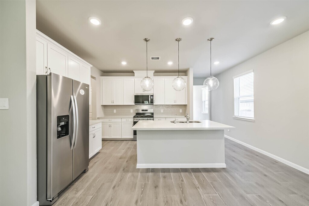 GORGEOUS,NEVER LIVED IN 2-Story 4/2.5 Beazer home in newly developed Montgomery Ridge!! Open,free-flowing layout features wood-look tile flooring throughout main living areas and baths. Island Kitchen equipped with full suite of Whirlpool SS appliances,gas stove,crisp white cabinets,quartz counter-tops,beautiful backsplash,and pendant & recessed lighting! HUGE pantry off the Kitchen; Laundry Room just beyond with front-loading Washer & Dryer! Primary Bedroom/Bath on 1st Floor,including double vanities,spacious shower and massive walk-in closet! Upstairs you'll find a Game Room along with 3 Secondary Bedrooms and Secondary Bath. Other features include MUD AREA off garage entrance,D/S Half Bath for guests,cordless 2-in. faux wood blinds,lots of storage space,lawn sprinkler system,and SO MUCH MORE! Zoned to highly rated Montgomery ISD schools and convenient to lots of shopping & entertainment! Be the FIRST to enjoy this beautiful home!! Ready for IMMEDIATE MOVE IN! MLS# 42137491