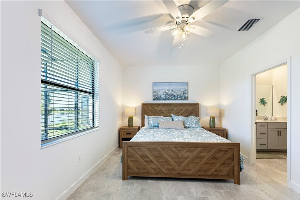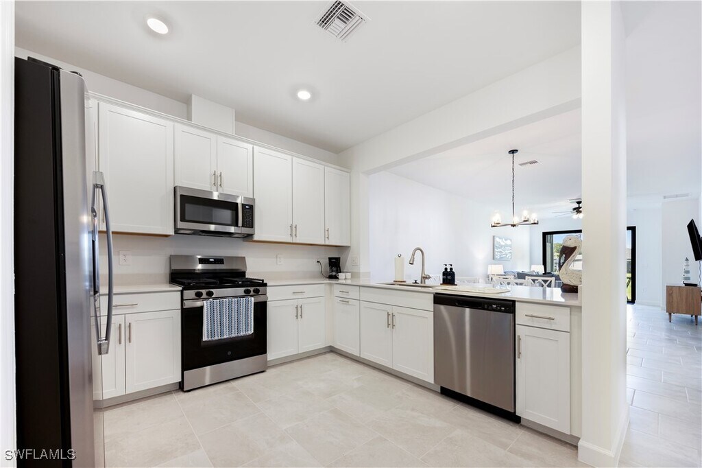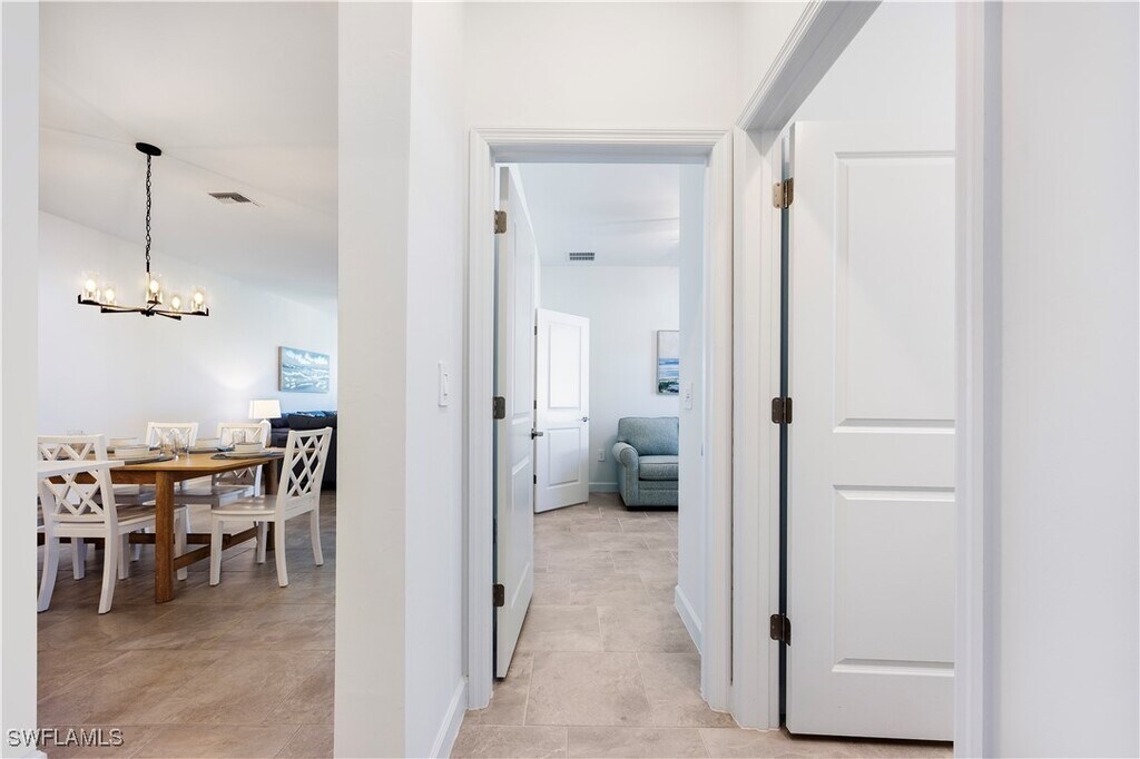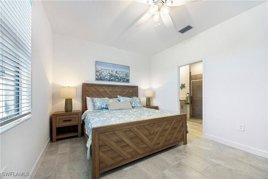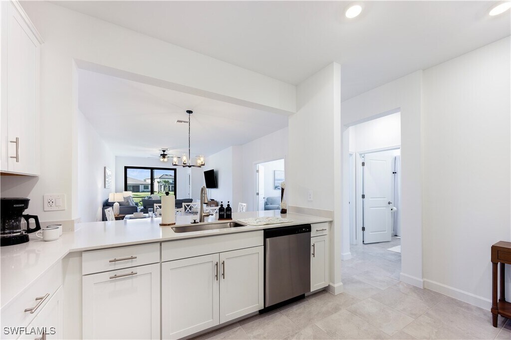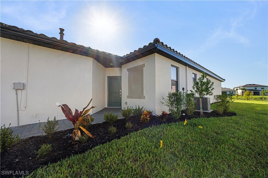 Welcome to 19573 Hinkley Dr,located in the sought-after gated community of Verdana Village . This pet-friendly Magnolia model villa offers 3 bedrooms,2 bathrooms,1,417 sq. ft. of living space,and a 2-car garage,all designed for both comfort and style. Inside,you’ll find a bright,open-concept floor plan with a modern kitchen featuring stainless steel appliances,quartz countertops,and designer-selected cabinetry that flows seamlessly into the dining and living areas. The spacious primary suite includes a walk-in closet and a luxurious bathroom with dual sinks and a walk-in shower. **The rear of the property is south facing,ensuring all-day sunshine and a warm,inviting backdrop for outdoor living.** Step outside to your screened lanai,the perfect spot to relax with morning coffee or unwind at sunset. Residents of Verdana Village enjoy resort-style amenities,including a resort pool,fitness centre,clubhouse,tennis and pickleball courts,playground,walking trails,and more. This villa combines low-maintenance living with a vibrant,pet-friendly lifestyle—all in one of Estero’s fastest-growing communities.