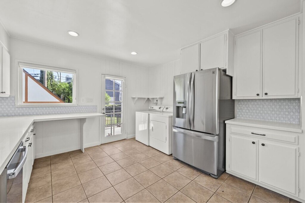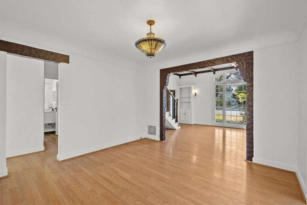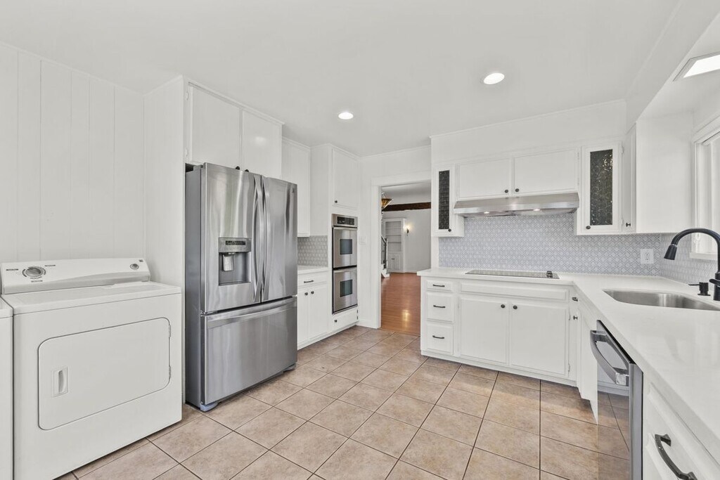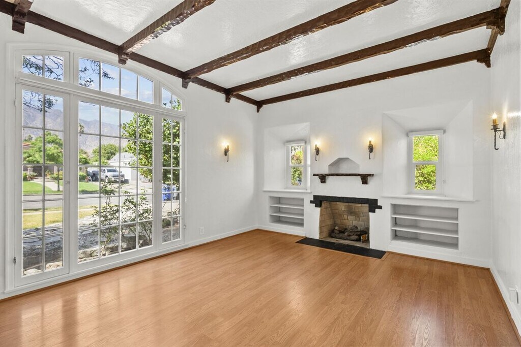 Welcome to this beautifully updated 4-bedroom, 2-bath residence, offering over 2,650 square feet of thoughtfully designed living space. Nestled in a peaceful, family-oriented neighborhood just minutes from Colorado Boulevard's shops, restaurants, and entertainment, this home seamlessly blends classic architecture with modern convenience. Explore inside to a sunlit living room featuring dramatic wood-beamed ceilings, oversized picture windows, and a stunning Spanish-style fireplace. Authentic hardwood floors, wrought iron accents, and colorful tilework celebrate the home's original charm while recent renovations bring added comfort and functionality. The main level hosts three spacious bedrooms and a full bath, while a newly added upper-level primary suite offers a private retreat complete with dual walk-in closets and enough space for a private sitting or media area. The updated kitchen includes stainless steel appliances, bright countertops, and an adjacent laundry area for everyday ease. Outside, enjoy a generous backyard ideal for relaxation or play, along with a detached 2-car garage and ample driveway parking. The property has been professionally cleaned and restored following the Eaton fire. Central heat and A/C, new roofing, and updated fixtures throughout make this an exceptional lease opportunity in one of Pasadena's most desirable pockets. Renter responsible for utilities. Washer and dryer included. Showings by Appointment only.