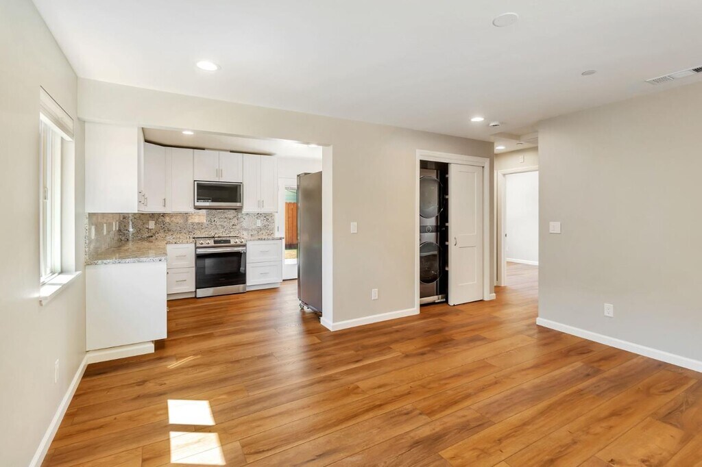 Newly renovated back unit of duplex (unit 1960 in the back of the property is currently available, unit 1958 in front has been leased) on a tree-lined frontage road adjacent to Woodside Road offering modern conveniences throughout. Each unit features 2 bedrooms, 1 bath. Inside, you'll discover a thoughtfully designed smart home featuring sleek stainless steel appliances, in-unit washer and dryer, and stylish finishes. Bright, open living spaces create an inviting atmosphere, perfect for both everyday comfort and entertaining. Large, low maintenance backyard. Prime west side Redwood City location close to amenities, public transportation, major freeways and neighborhood parks. Rent includes water. Worth a visit!