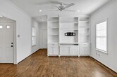 Built in 2009,this charming free-standing 1-bedroom,1-bath cottage is quietly nestled on a serene half-acre lot in the heart of Spring Branch,offering exceptional privacy in a central location. The interior features high ceilings,hardwood floors,and custom cabinetry in both the kitchen and living area,creating a refined yet comfortable living space. The spacious bedroom includes a walk-in closet,while the fully remodeled bathroom (completed 12/23) delivers a fresh,modern aesthetic. Additional highlights include a full-size washer and dryer,single carport with storage closet. Yard maintenance,water,sewer,and trash are included. Enjoy easy access to Spring Branch Village with a short drive or bike ride to local coffee shops,dining,and everyday conveniences. A rare opportunity for private cottage living with elevated finishes in one of Houston’s most desirable neighborhoods. Contact agent for info on partial generator being installed. MLS# 85899554