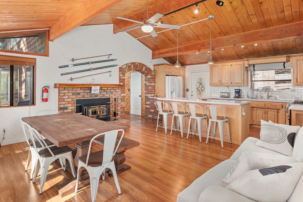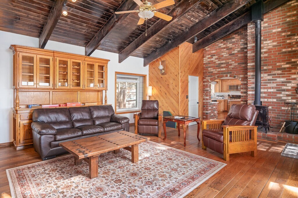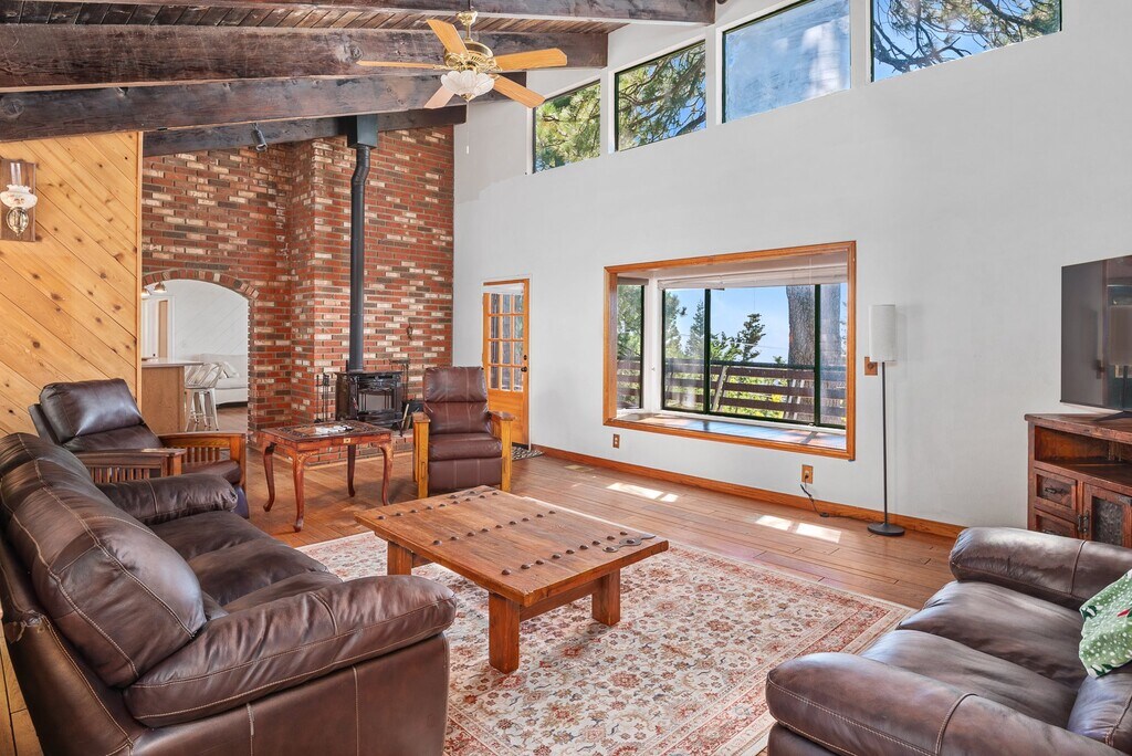 Nestled in the scenic mountain town of Running Springs, this beautifully updated 4-bedroom, 2.5-bath home offers the perfect blend of rustic charm and modern convenience. Whether you're looking for a peaceful full-time residence or a serene work-from-home escape, this spacious mountain retreat has it all. Step inside to discover a light-filled interior featuring gorgeous wood floors, three cozy wood-burning fireplaces, and plenty of character throughout. Enjoy stunning views of the Inland Empire and surrounding mountains from the expansive deck, perfect for morning coffee or evening sunsets. With abundant natural light throughout the home, every room feels warm and inviting. This home also includes a washer and dryer, a spacious garage, and parking for multiple vehicles. The large deck provides a wonderful space for relaxing or entertaining, and the home's thoughtful layout offers both comfort and functionality. Located in a peaceful neighborhood with easy access to local amenities and highways, this property is ideal for those seeking both tranquility and convenience. This is a rare opportunity to lease a truly special home in one of Southern California’s most beautiful mountain communities. This property is professionally managed by Arrowhead Property Rental, DRE#02212917 - The tenant is responsible for all utilities. - Furnished or unfurnished. - The owner will consider a pet.
