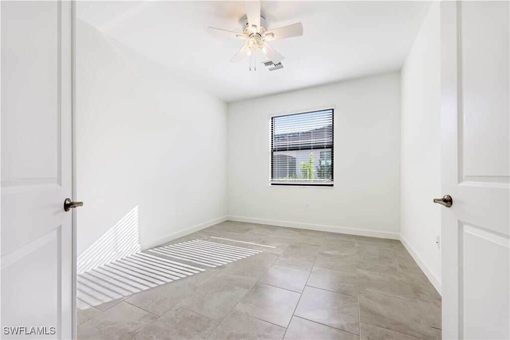 Welcome to **19597 Hinkley Dr**,a pet-friendly villa in the desirable gated community of Verdana Village by Lennar. This Orchid-model home offers 2 bedrooms plus a den,2 bathrooms,1,564 sq. ft. of well-planned living space,and a 2-car garage. Inside,an open-concept layout highlights a modern kitchen with stainless steel appliances,quartz countertops,and designer cabinetry,flowing seamlessly into the dining and living areas filled with natural light. Fans and overhead lights have been installed in all bedrooms,the dining area included a light fixture,and a TV mount is already installed in the living room for your convenience. The spacious primary suite includes a walk-in closet and a spa-inspired bath with dual sinks and a walk-in shower. Additional touches include installed towel hooks in both bathrooms. **The rear of the property is south facing,providing sunshine from morning to evening and a bright backdrop for the screened lanai—perfect for coffee at sunrise or relaxing at sunset.** Residents of Verdana Village enjoy resort-style amenities,including a resort pool,fitness center,clubhouse,tennis and pickleball courts,playground,and scenic walking trails. This villa offers low-maintenance comfort and a vibrant,pet-friendly lifestyle in one of Estero’s fastest-growing communities.