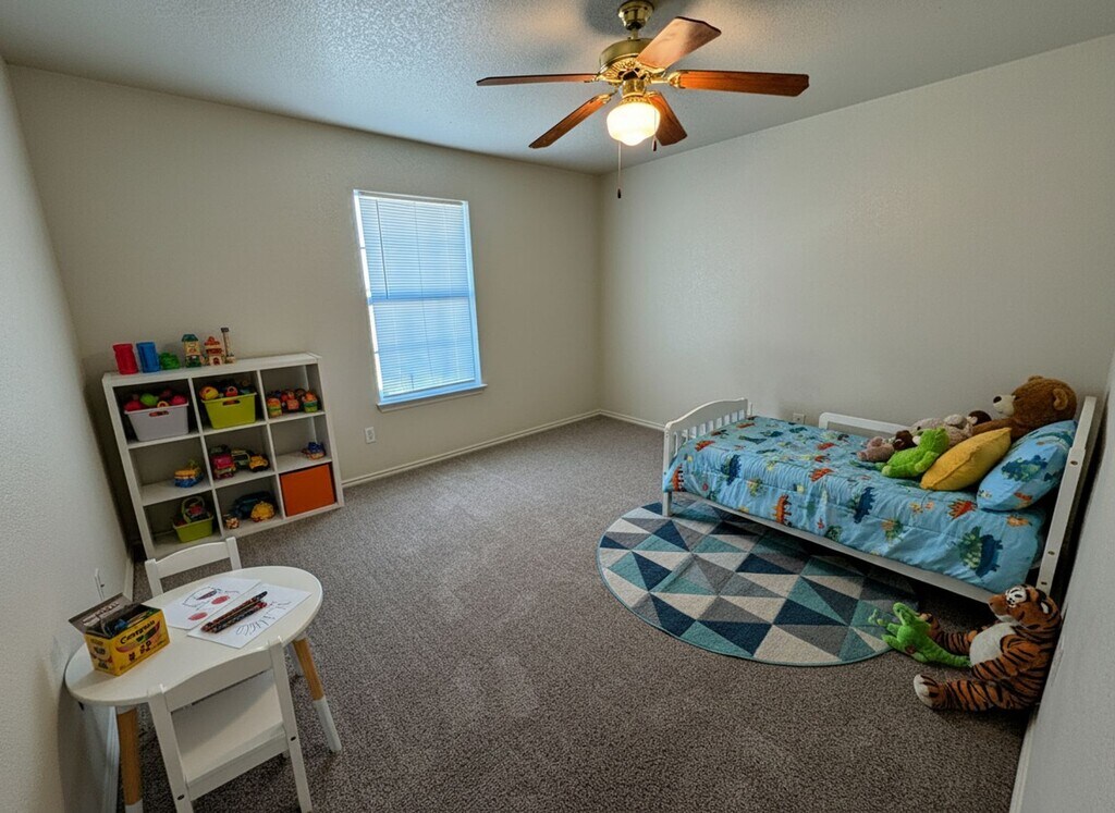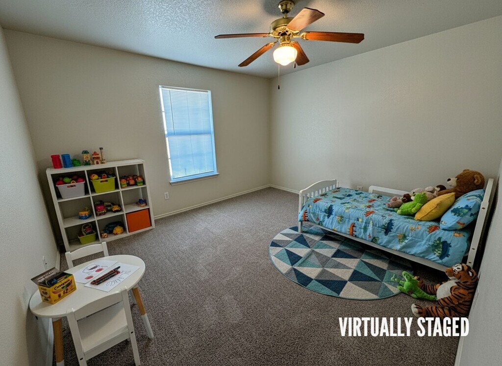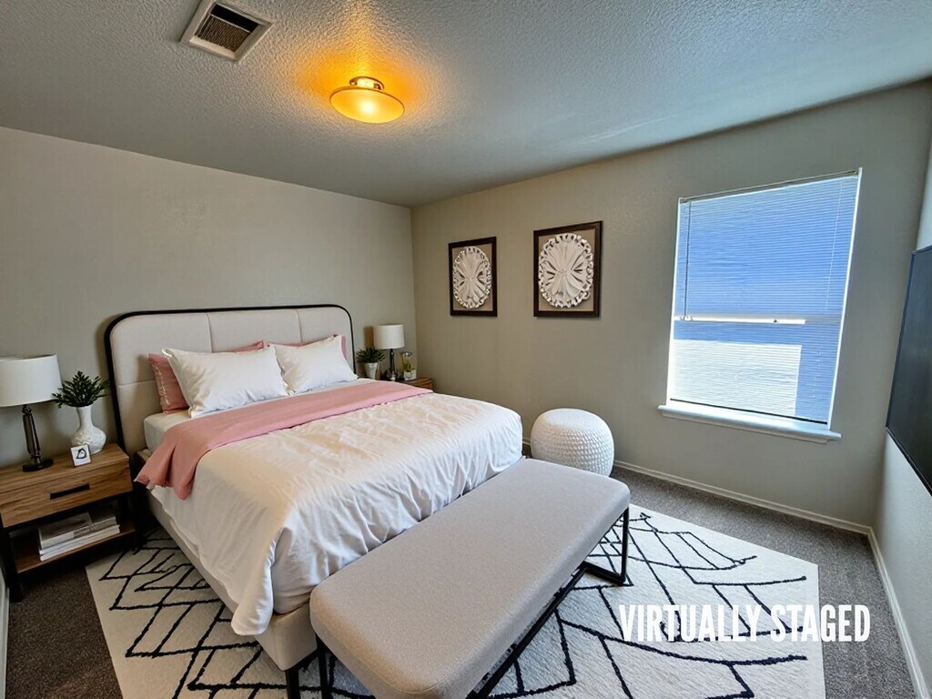 View 360 Virtual Tour: 2-bedroom 2.5-bath two-story townhome with carpet throughout and tile in the kitchen and bathrooms. The kitchen features all white appliances and a functional layout. Spacious and well-designed for comfortable living. Come by our office to see this property today. Disclaimer: The furnishings or enhancements shown are AI-generated and intended for inspiration only. They may not reflect the actual scale, condition, or current features of the property.